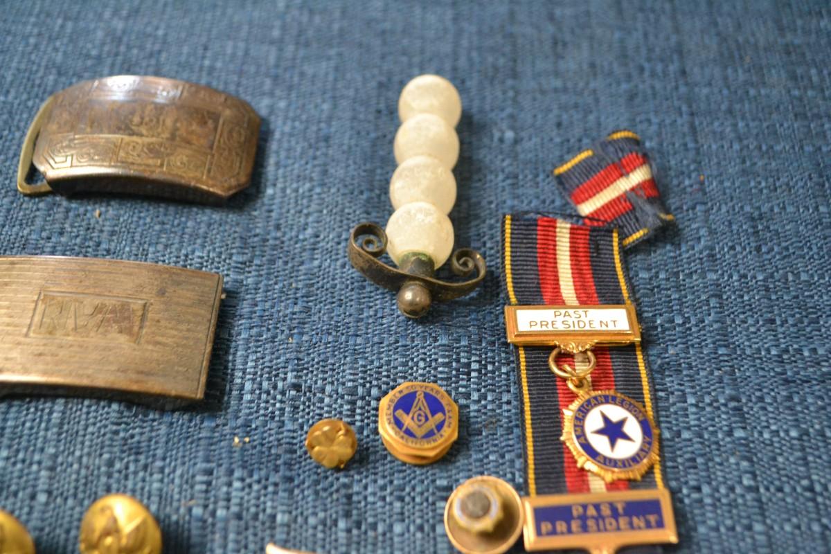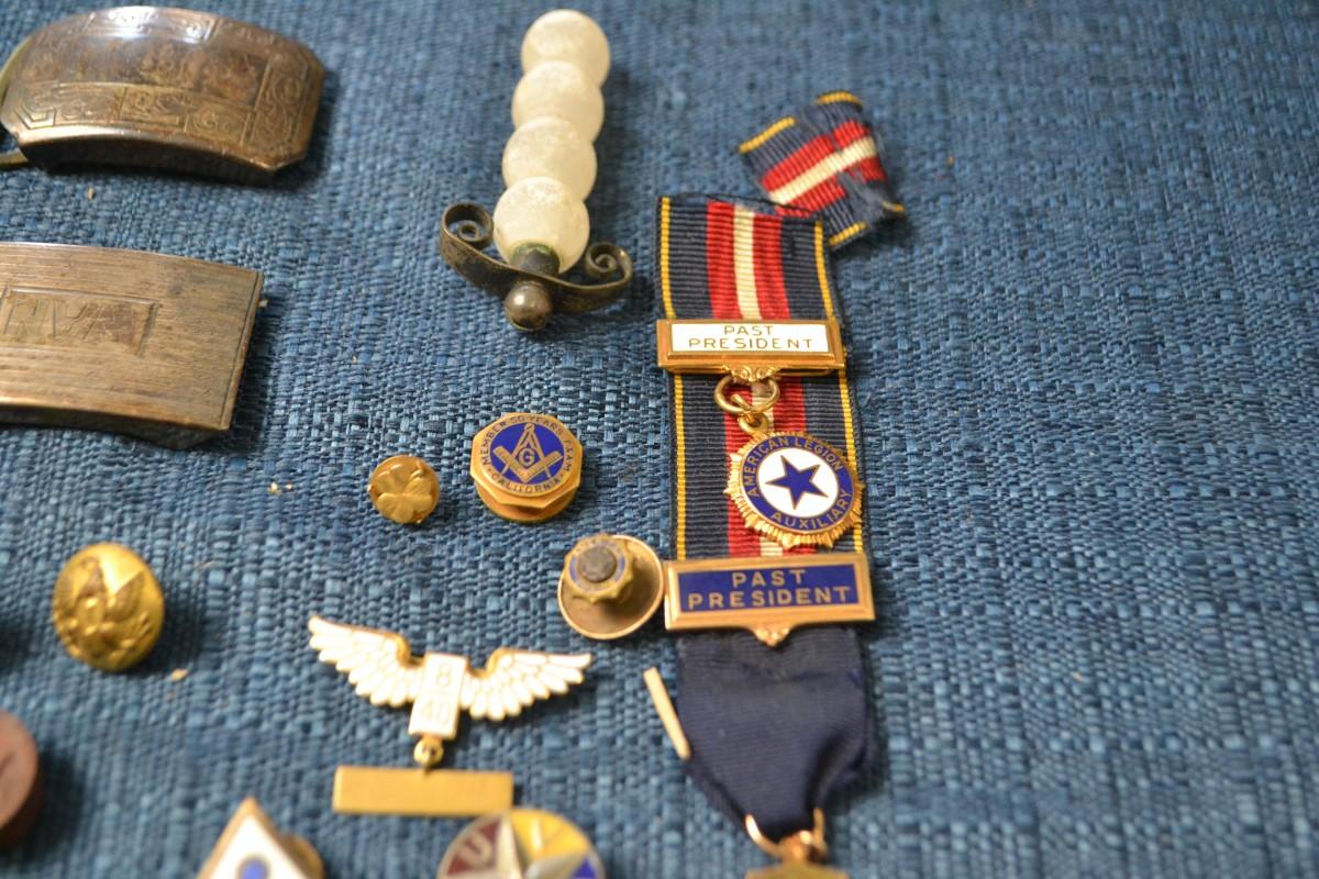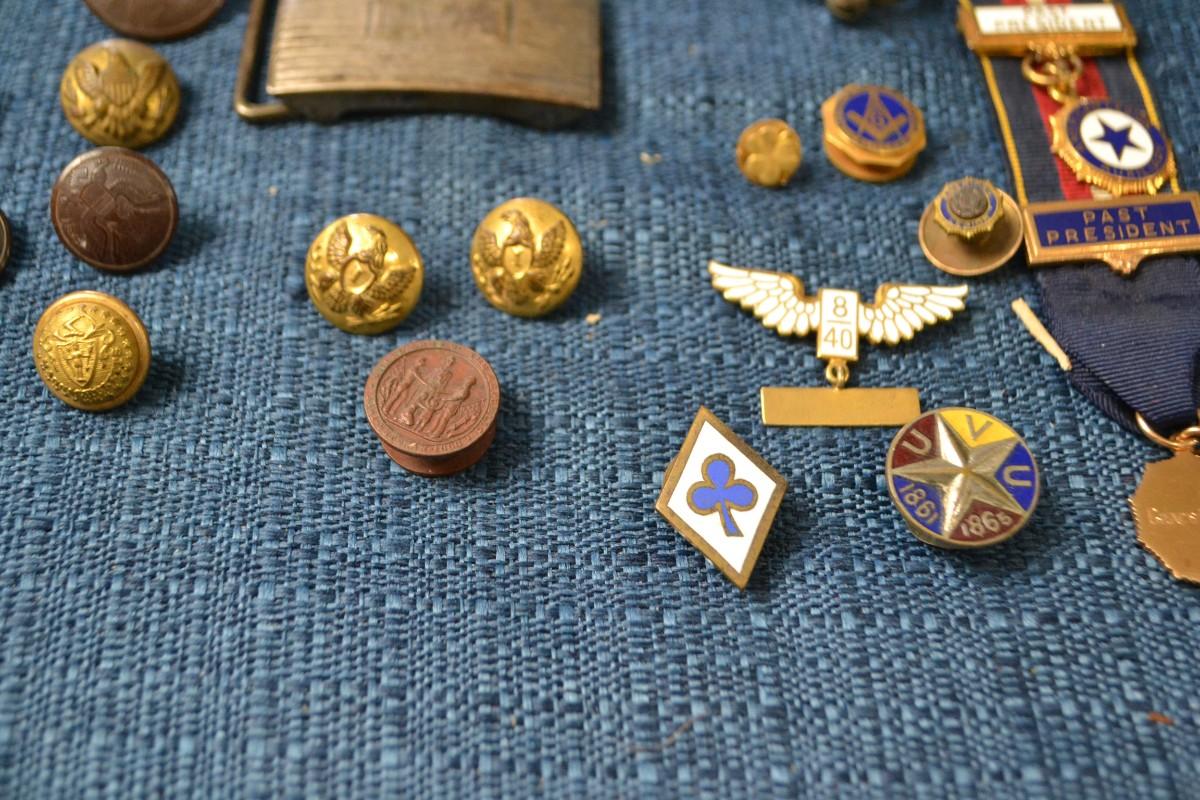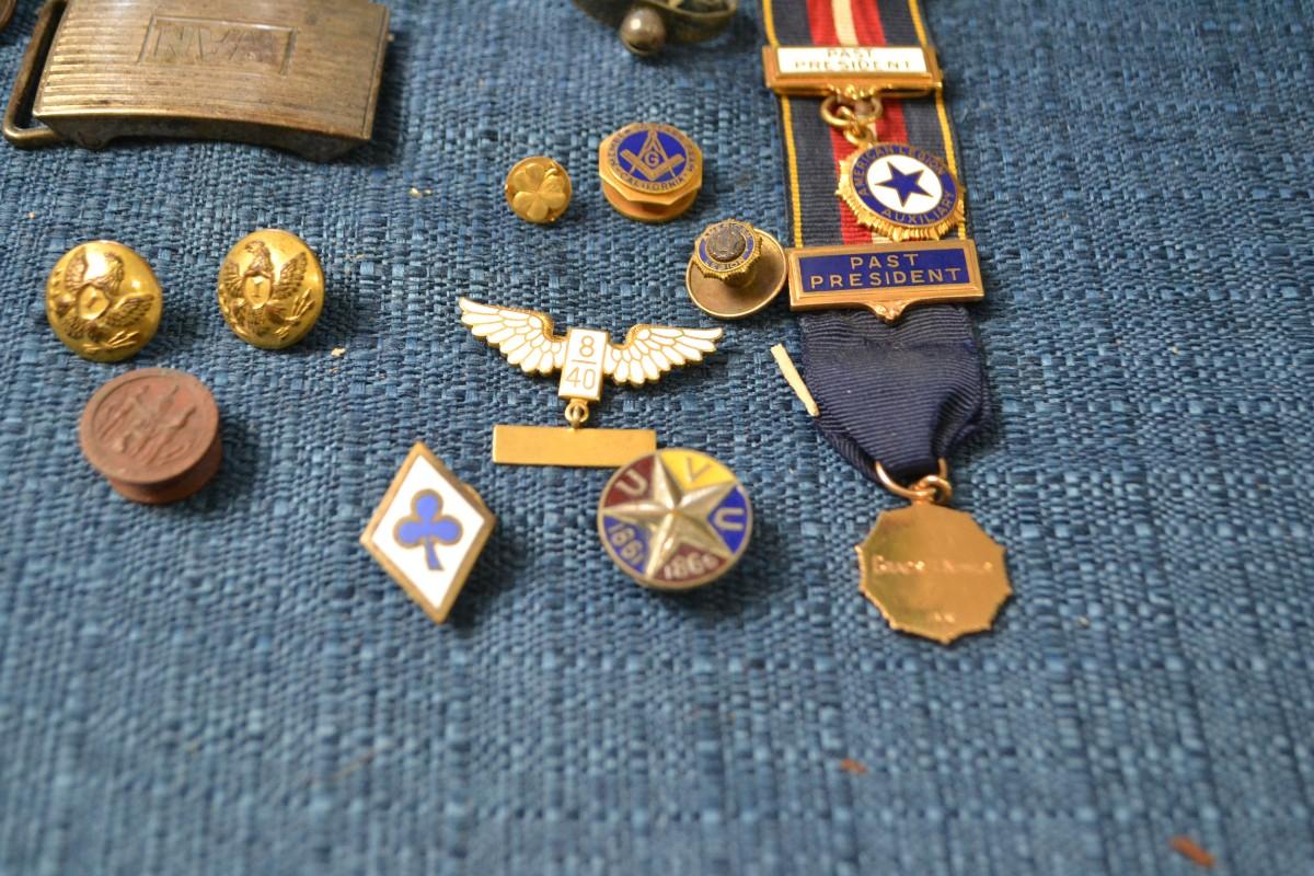 MILITARY ITEMS, BUCKLES, PINS, BUTTONS