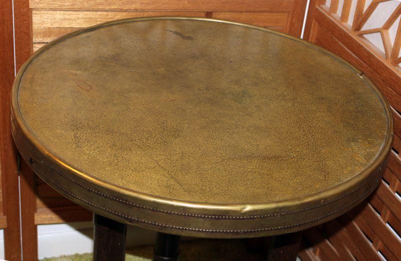 Great condition for its' age. There are a couple of small dings in the brass but they only add to its' character. 23 1/2" Diameter x 27" high
