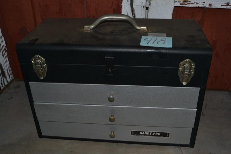LOT 418. VINTAGE HANDY-PRO HANDYMAN TOOL BOX IN GOOD SHAPE