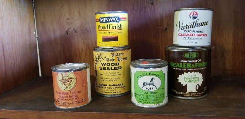 LOT #419: Group of Vintage WOOD Finish Products (Most 1/2 full WOOD SEALER FULL)