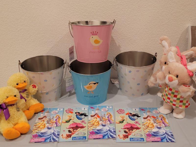 Lot 420: New Easter Metal Buckets, Stickers Pads and Animated Ducks & Bunnies