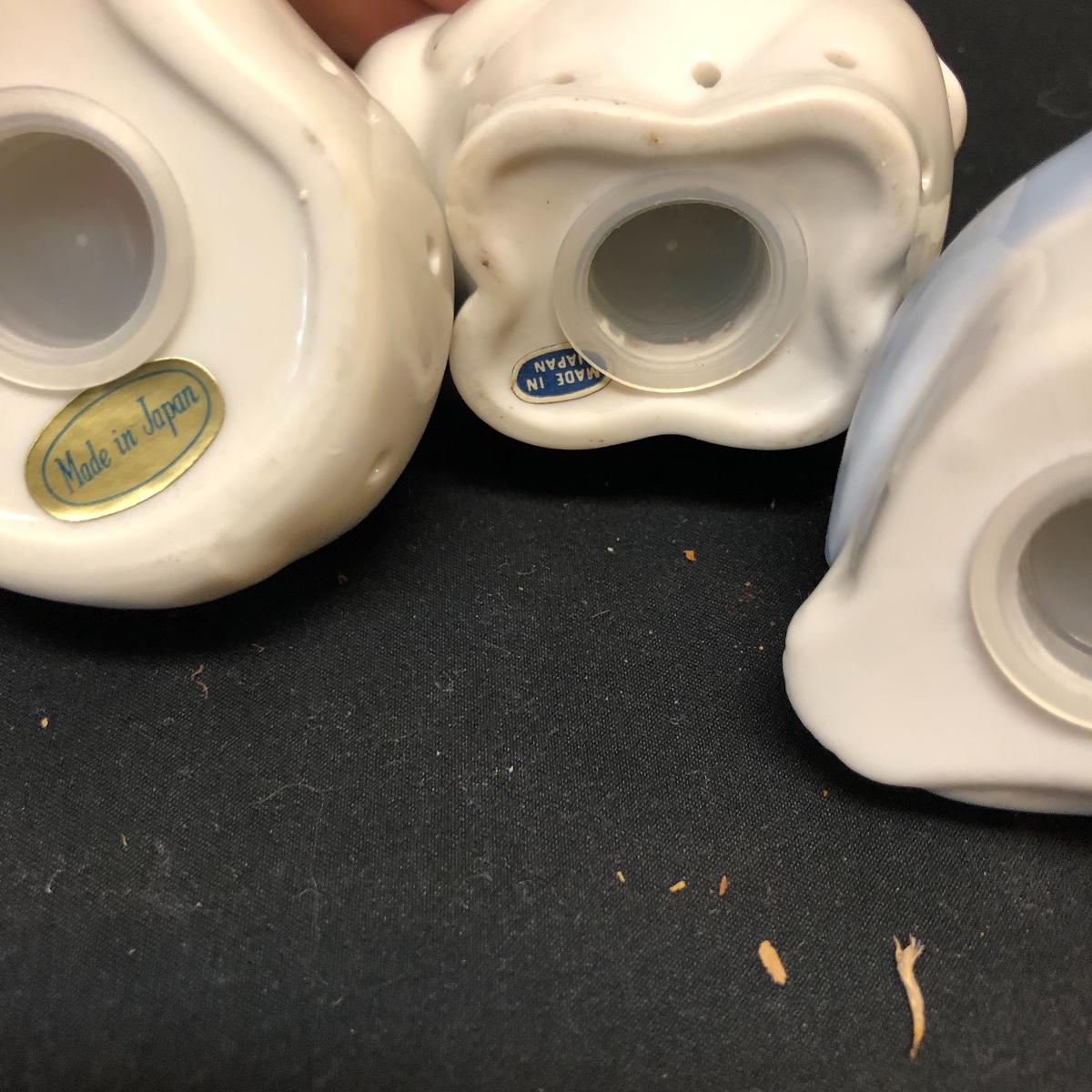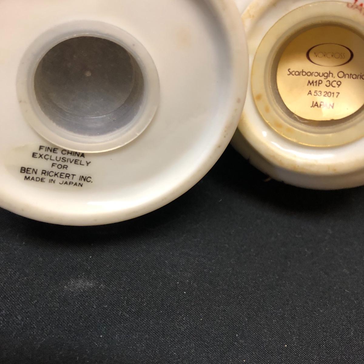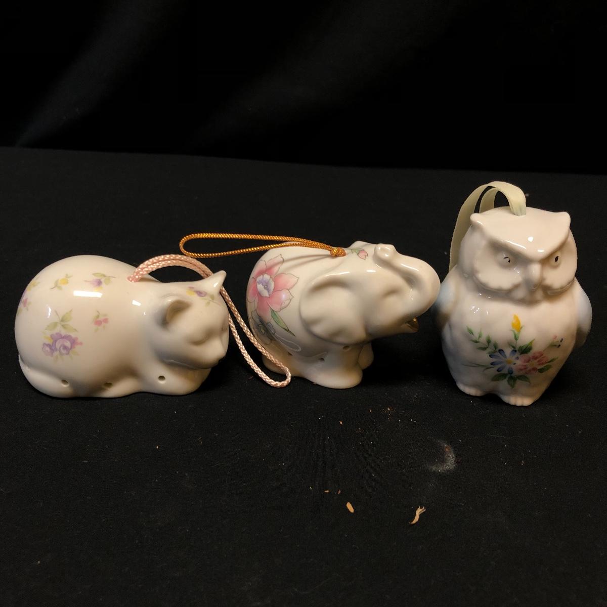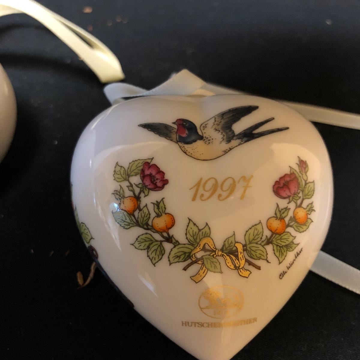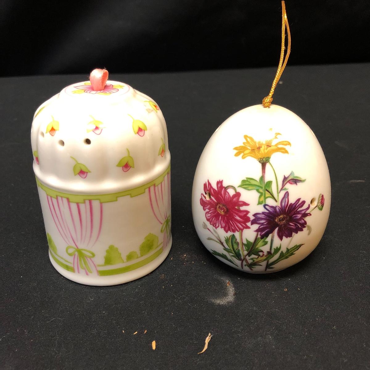 Lot includes Spode Hammersley fragrance ball, four pieces made in Japan, three unmarked pieces, ball made in Scotland, Ball made in Taiwan and a heart made by Hutschenreuther. Largest piece measures 3”D x 4”tall.