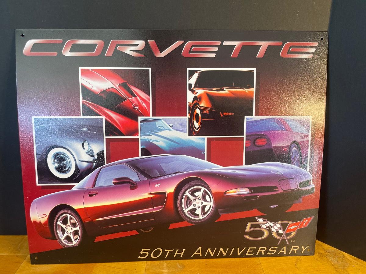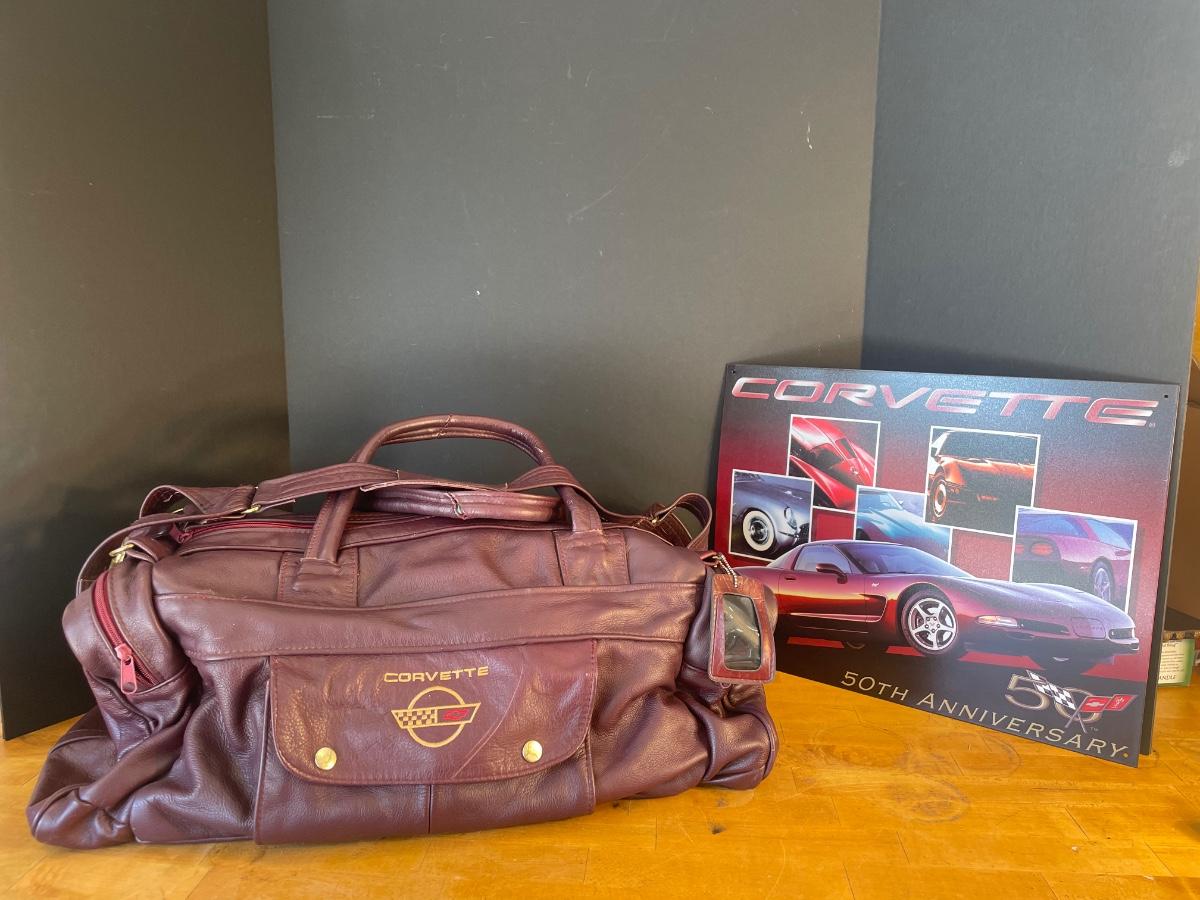 Lot 41-A. Corvette Leather Duffel Bag & Metal Poster
