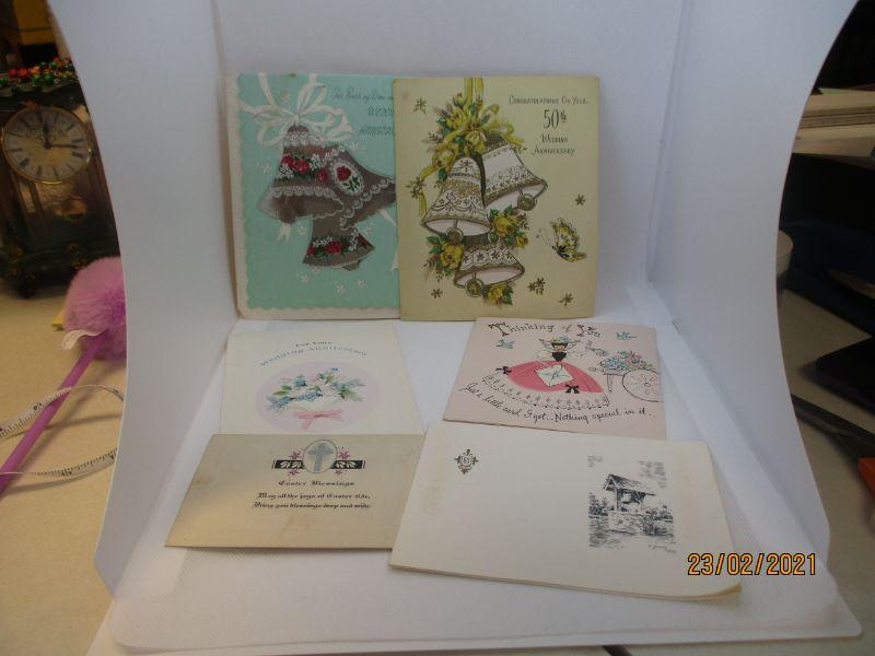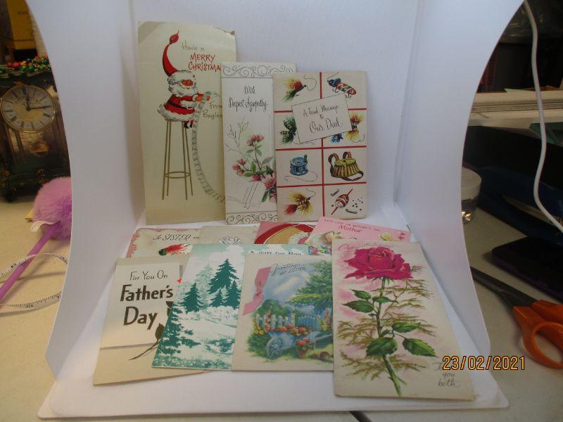 This last bundle has cards for anniversary, Mother's Day, Father's Day, Valentine's Day, and Easter. These cards were all used, but are really cool and would be great for those who like to re-purpose the artwork from old cards.1950s-1960s era.