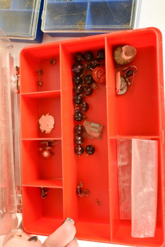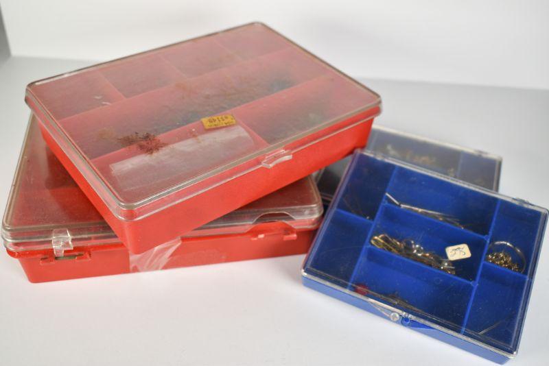 Two red toolboxes; one blue toolbox. Contents included.**Please read Terms and Conditions before placing a bid. Pick up is Sunday, December 22 from 11am to 3pm or Monday, December 23 from 4pm-7pm in Mantua, NJ. All sales are final. All sales are as is, where is. Please review all photos. Props are not included. Measurements are approximate.