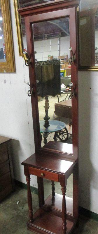 Lot 42 - Mahogany Wood Petite Hall Stand With Mirror 79"x17"