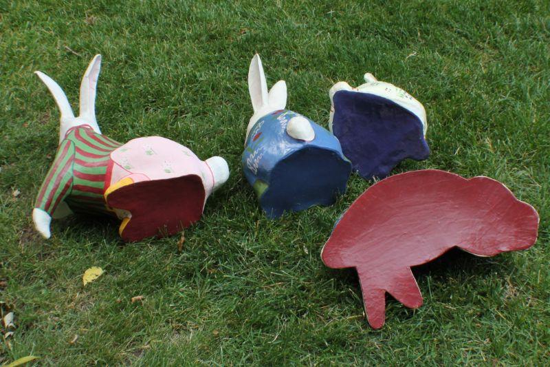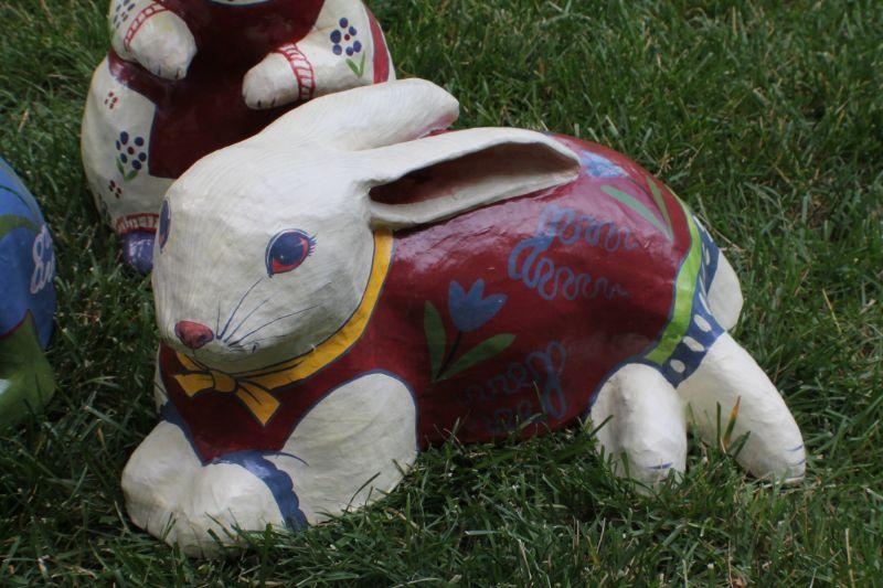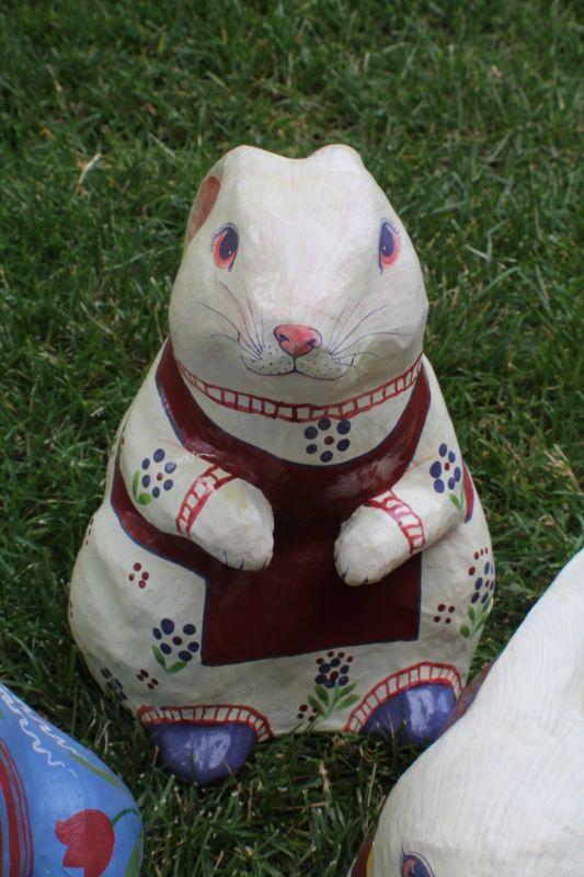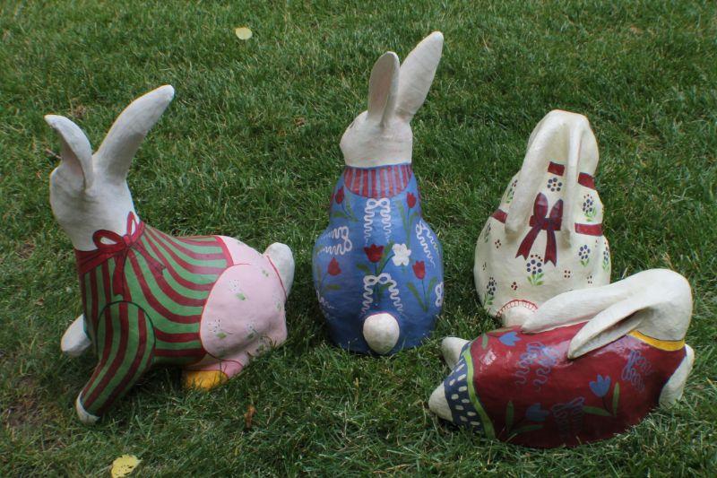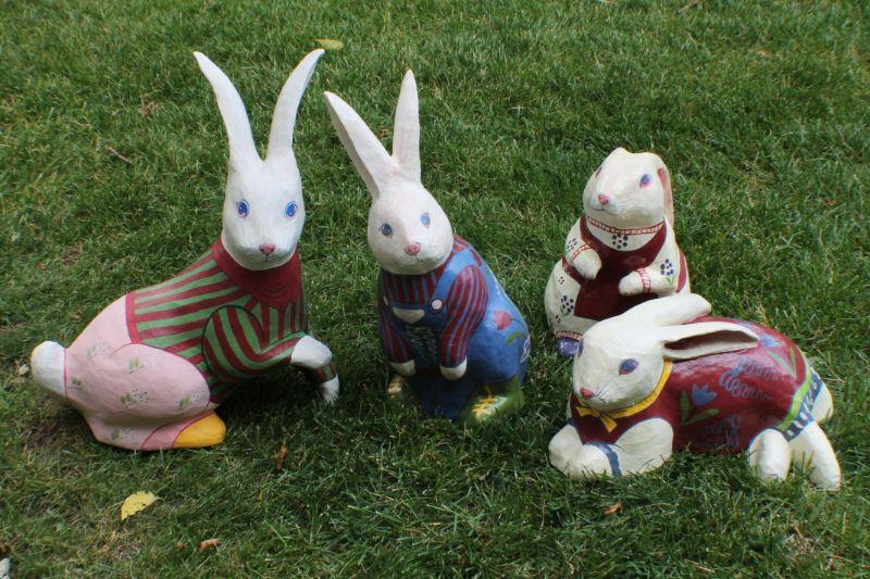 LOT #42: (4) Hand Painted Made in Thailand Plaster Easter Bunnies