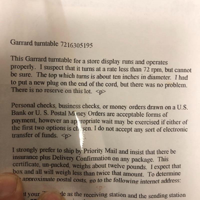 SOLD AS IS No Guarantee: Everything is sold “As-is, Where-is” without guarantees of any kind. No Exceptions! Neither the auctioneer nor any consignor or staff member makes any warranties or representation of any kind or nature with respect to the property, and in no event shall they be deemed to have made any representation or statement at the sale or elsewhere to mean otherwise. Due diligence to verify the condition and description of a lot is the sole responsibility of the Bidder prior to placing any bid. No Returns or refunds.