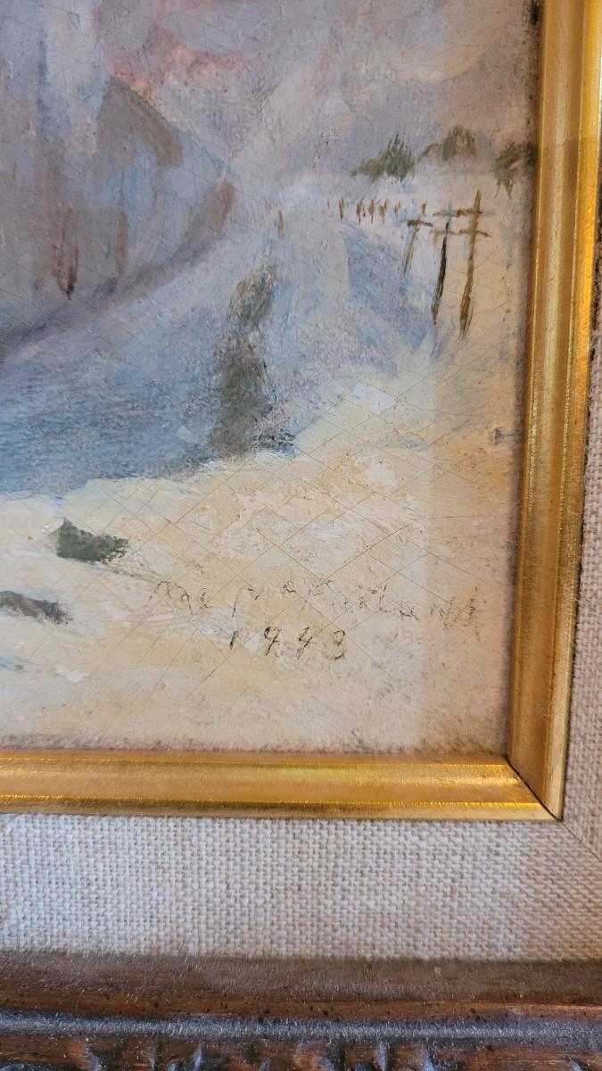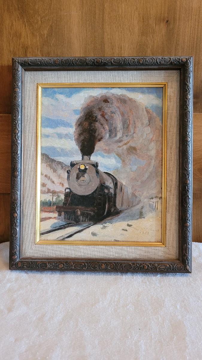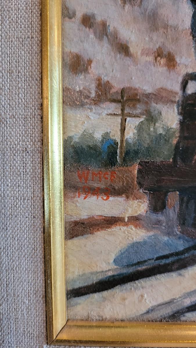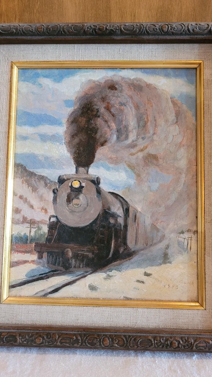 Lot 42: 1943 Train Painting by W. McFarland? (Signature is not clear)