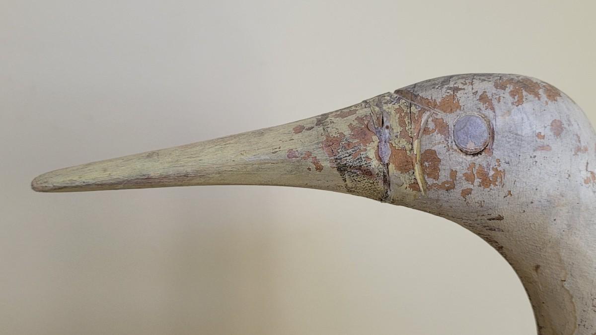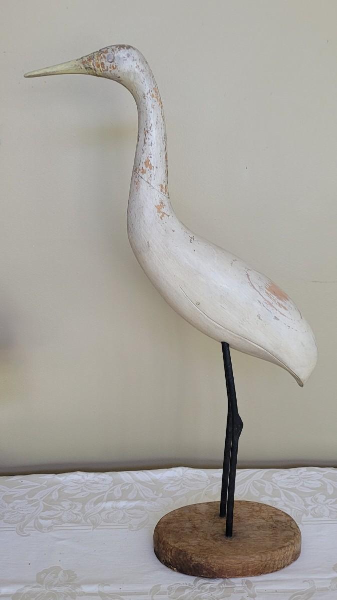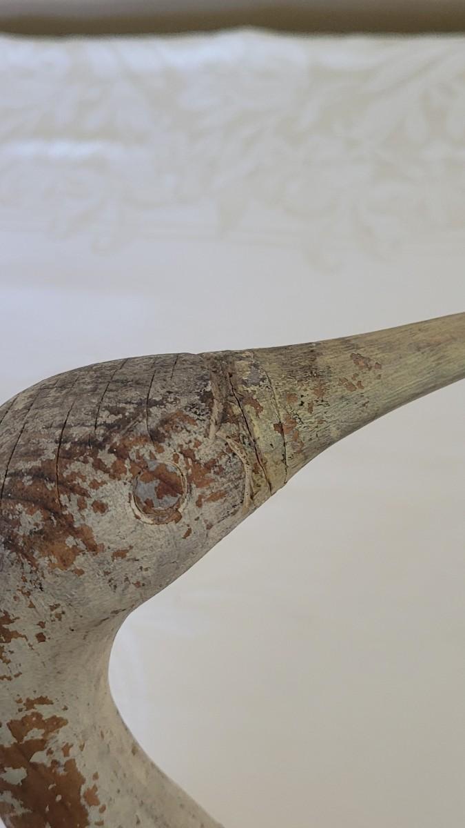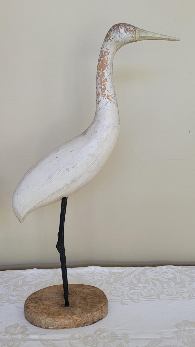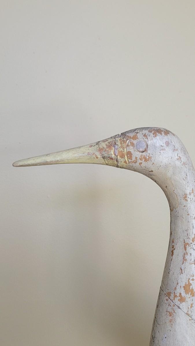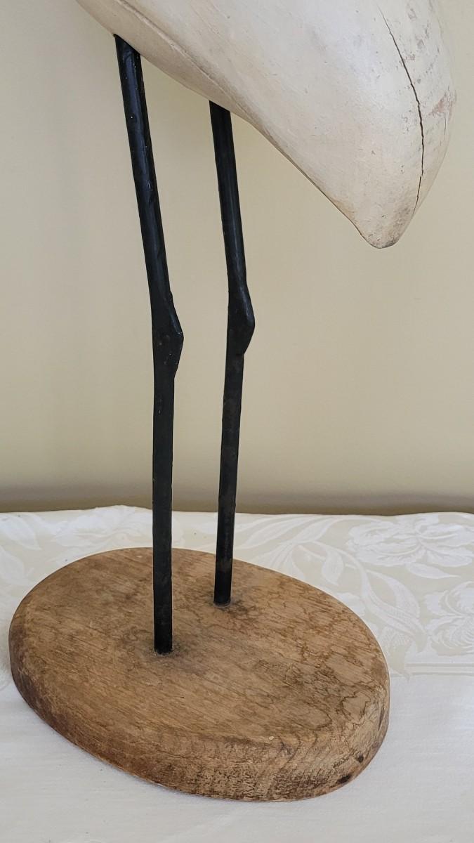 Lot 42: Vintage Folk Art Wood Crane with Metal Legs
