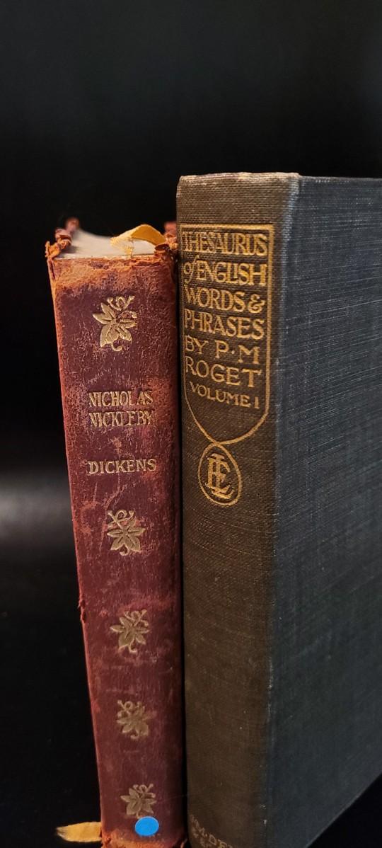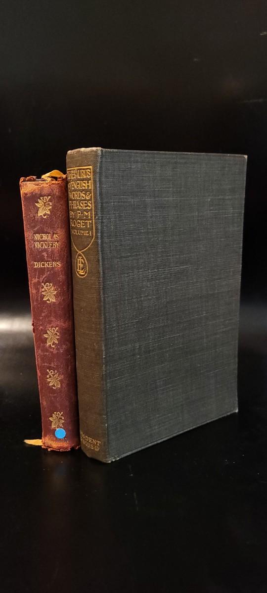 Antique 1912 Thesaurus of English Words and Phrases and Antique Nicholas Nickleby by Charles Dickens.