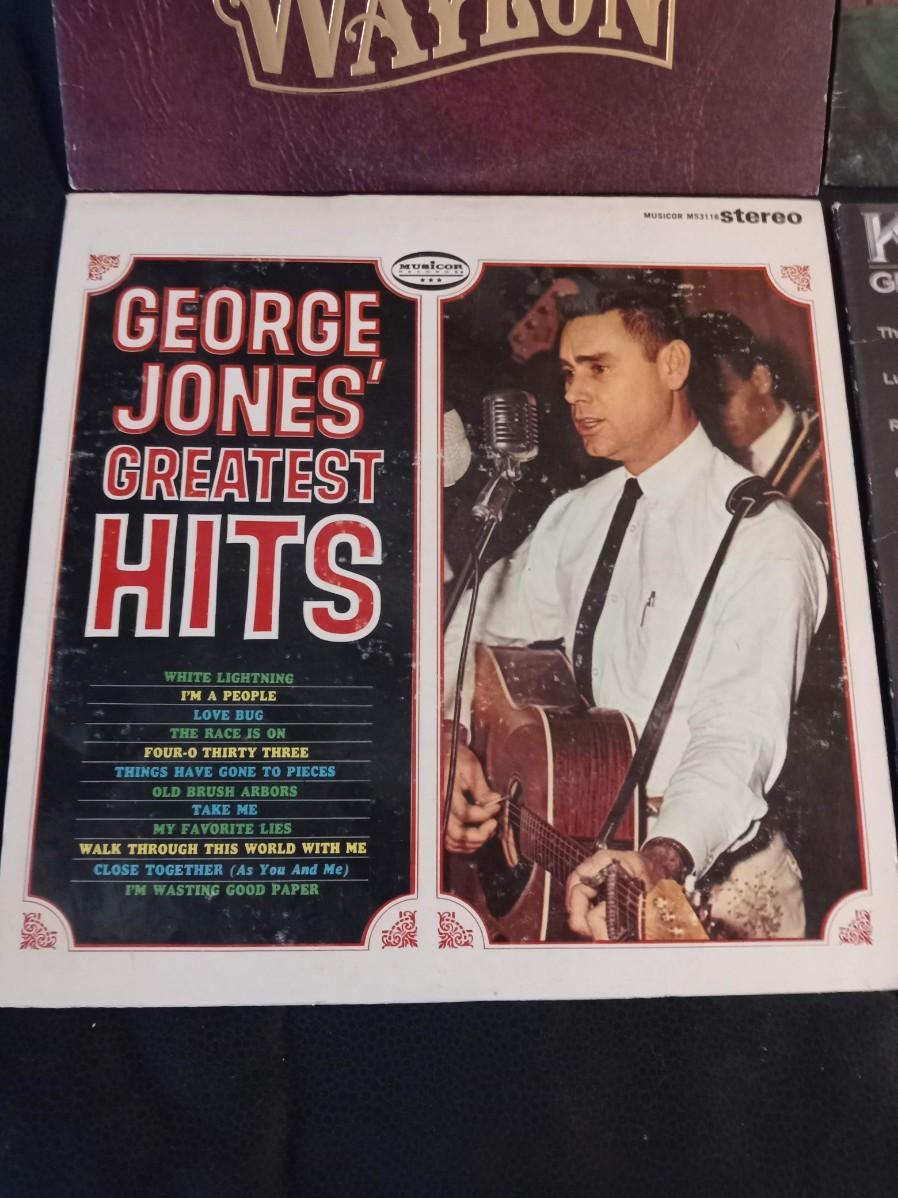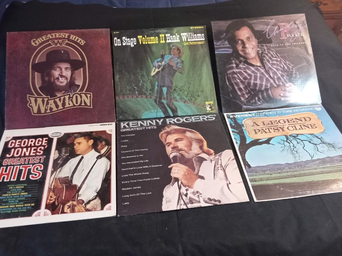 WAYLON JENNINGS, HANK WILLIAMS, CHARLEY PRIDE, GEORGE JONES, KENNY ROGERS AND PATSY CLINE. THE HANK WILLIAMS HAS CONSIDERABLE WEAR THE OTHERS HAVE LIGHT WEAR