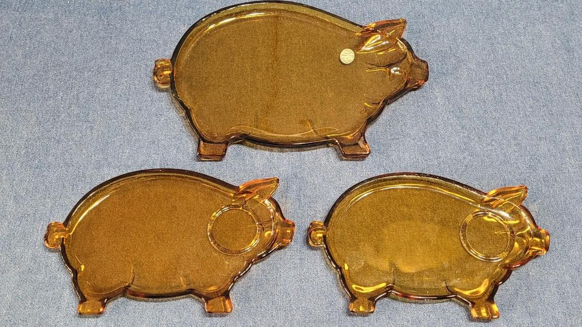 Lot 42: Vintage TIARA Brown Glass Pig Plates (3)