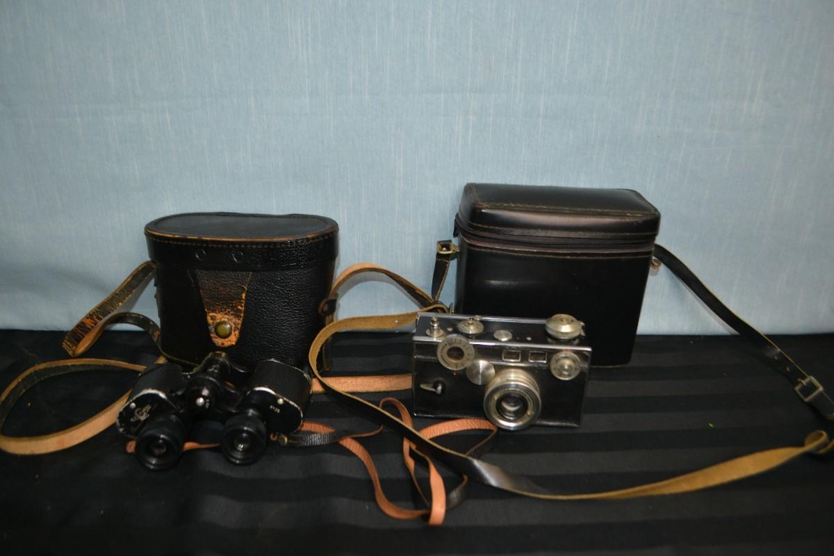 LOT 42. VINTAGE BINOCULARS AND CAMERA