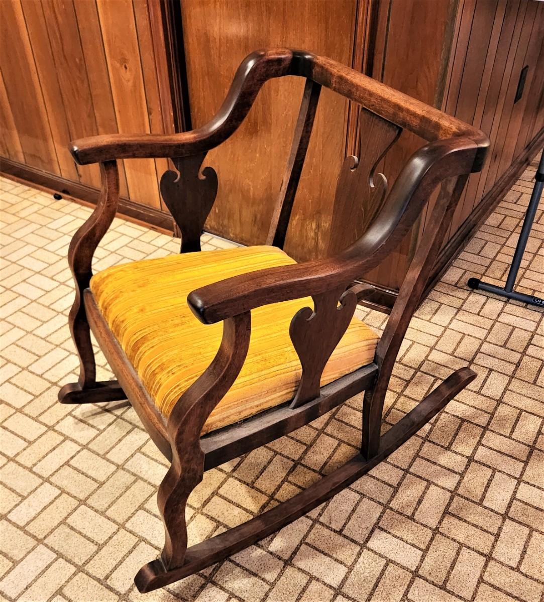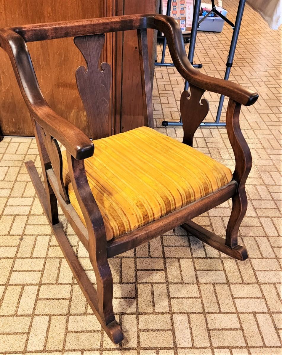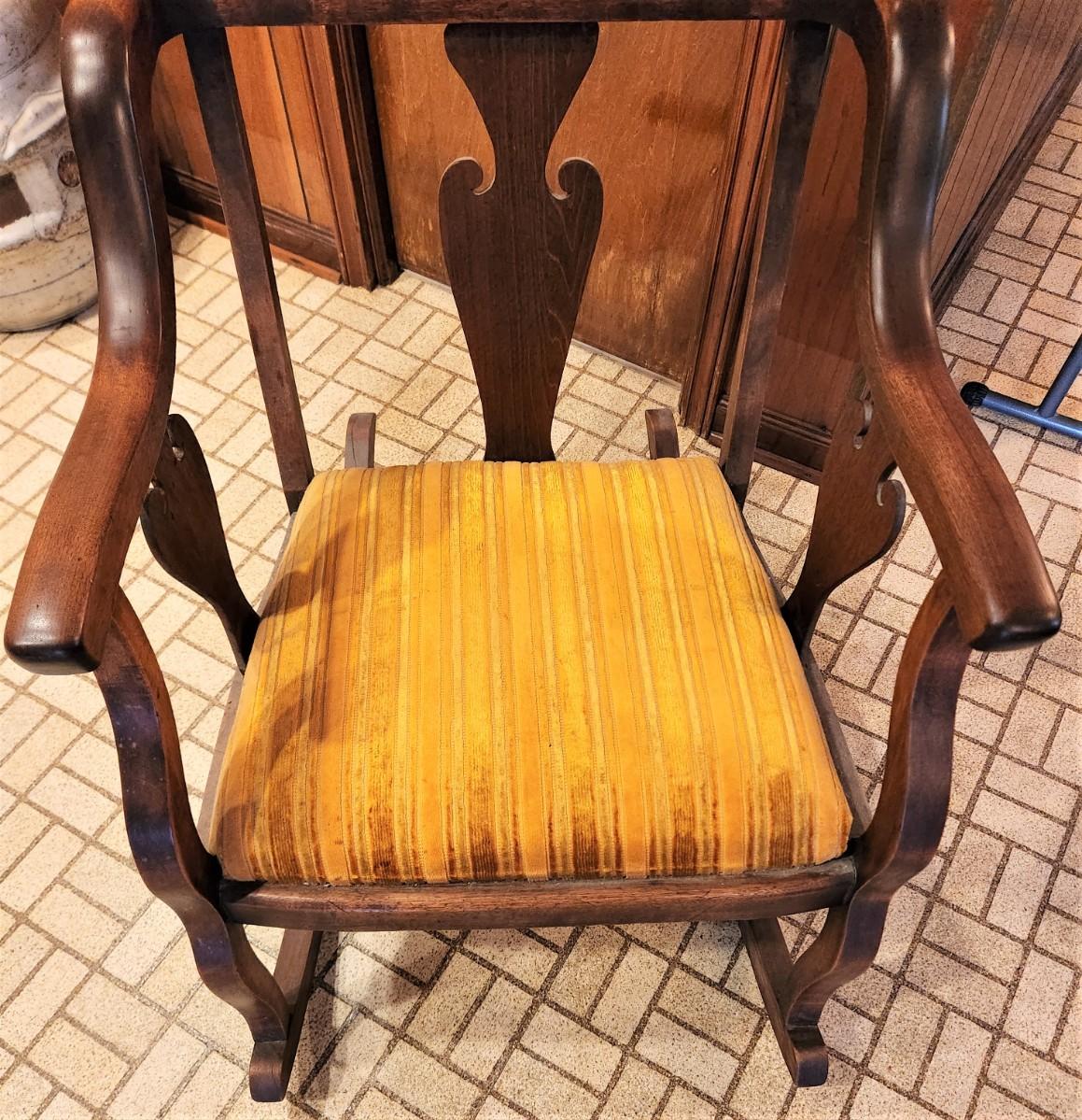Antique Rocker - solid oak - sturdy. 31" tall, 23" across, 35" deep with rockers. Antique condition.