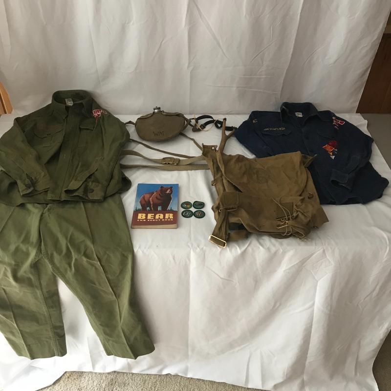 Boy Scout and Cub Scout uniforms, patches, handbooks, backpack, belt, canteen and more. Two Girl Scout books included. Lot is available for shipping and local pick up.
