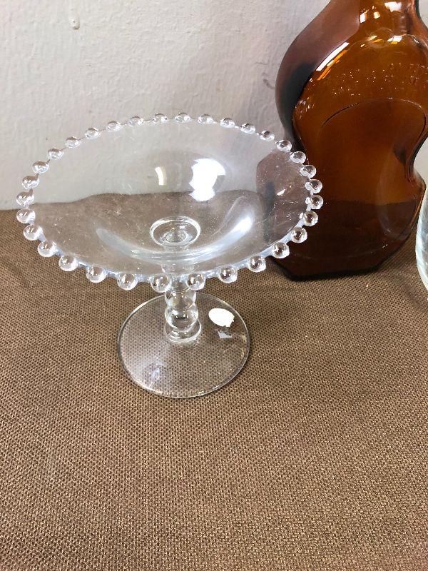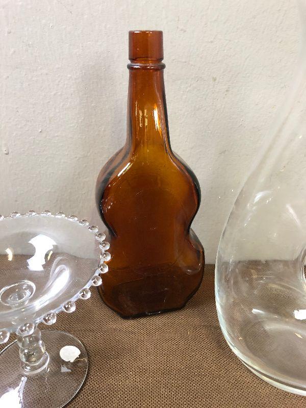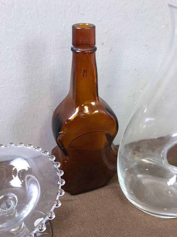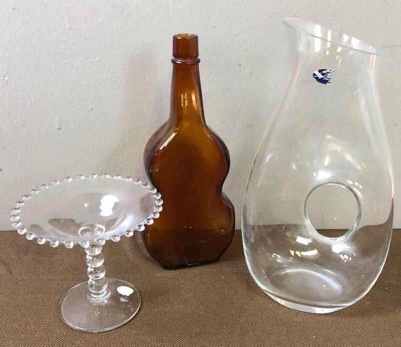 Lot #42 Footed dish Italian Compo and Brown Decanter