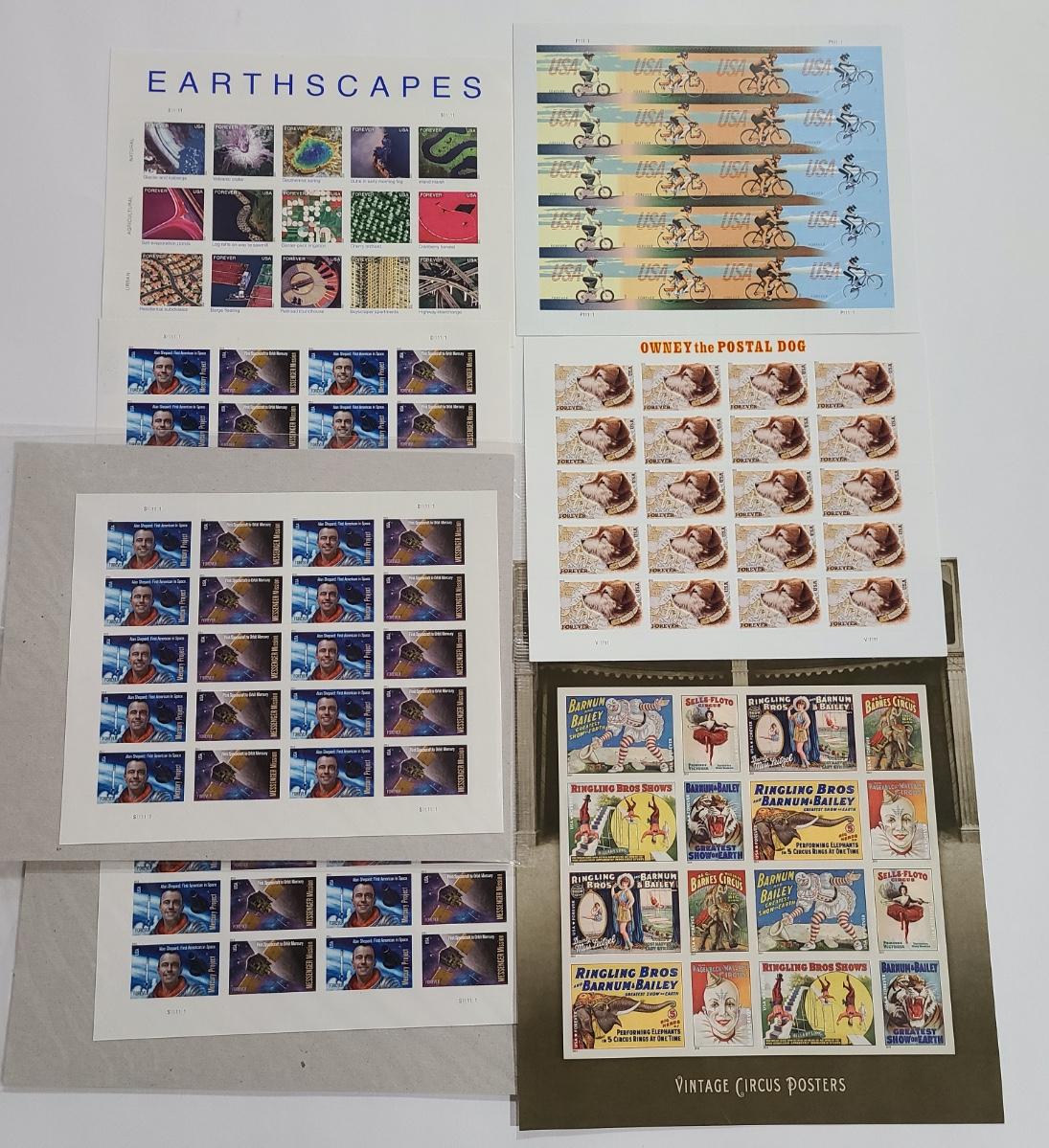 Lot 42: Forever Stamps 131: Owney the Postal Dog, Earthscapes, Circus & More ($75.98 retail)