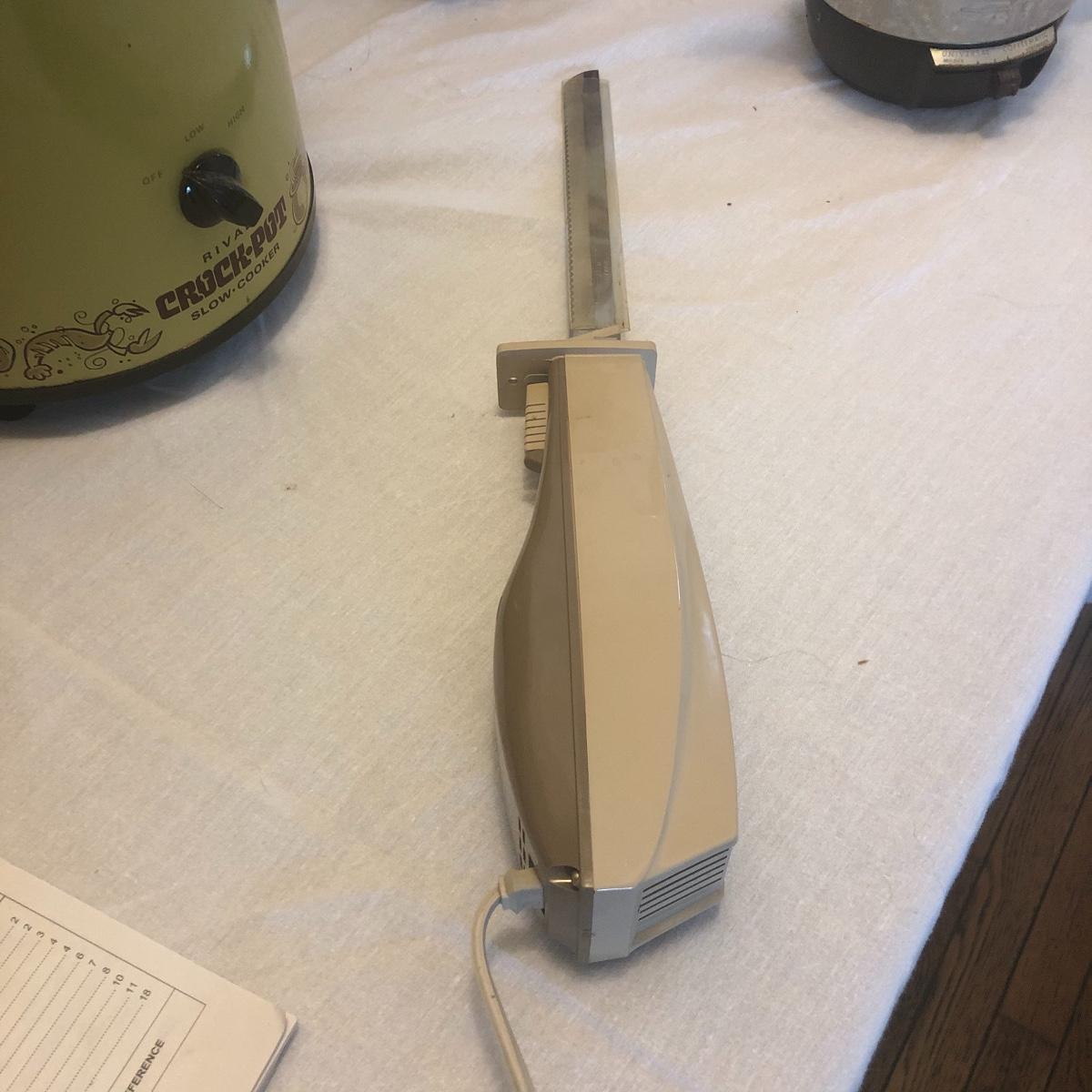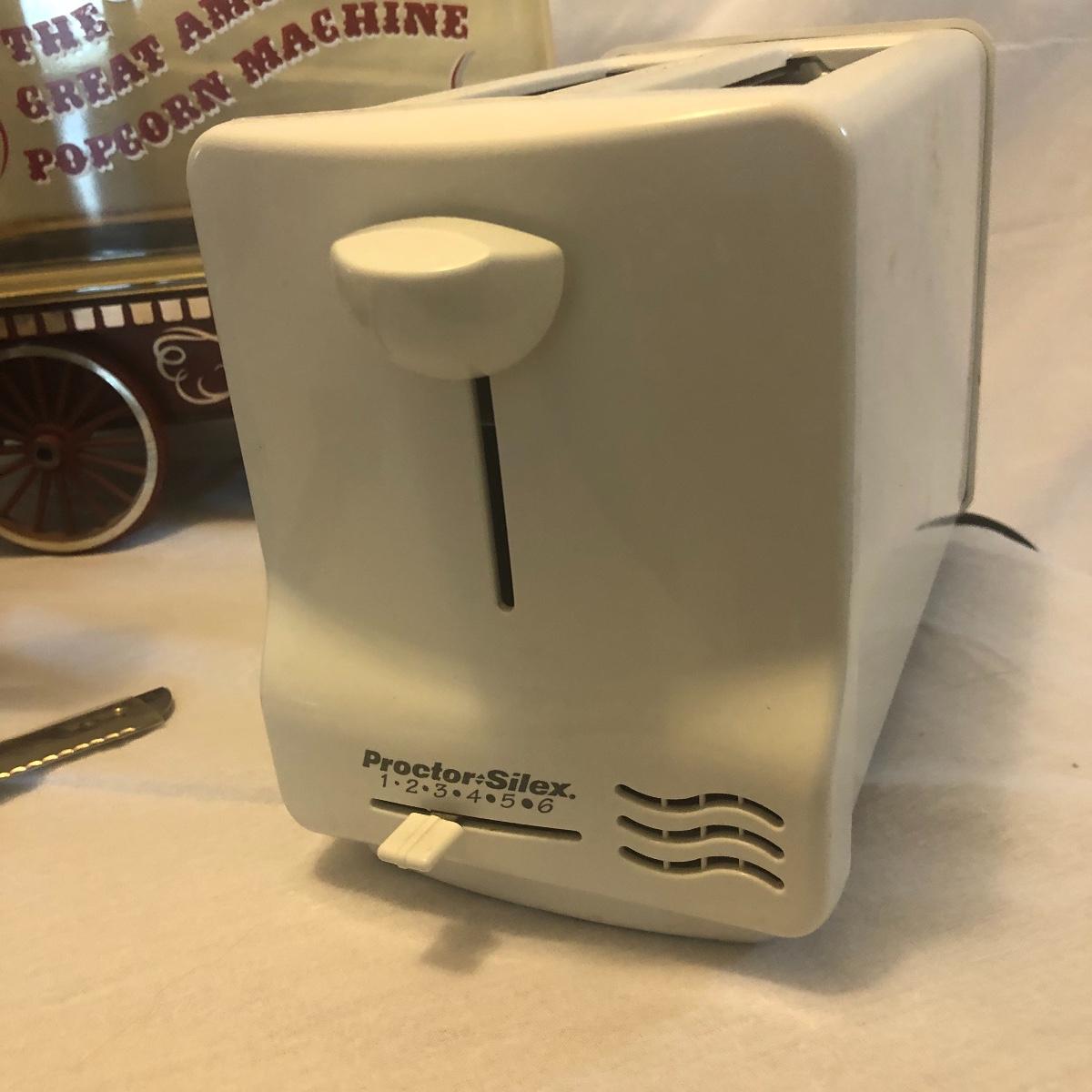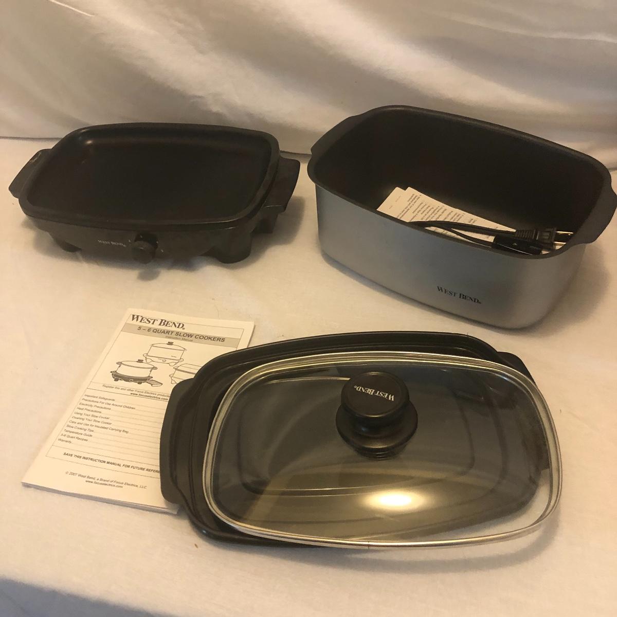 This lot includes a microwave, new in box 12 cup Mr. Coffee maker, a toaster, a Proctor-Silex coffee maker, a Cuisinart mini-prep processor, an electric knife, a West Bend 5-6 quart slow cooker, a Rival crockpot with glass lid, coffee percolator and popcorn maker. All Appliances powered on when plugged in. Local pick up only.