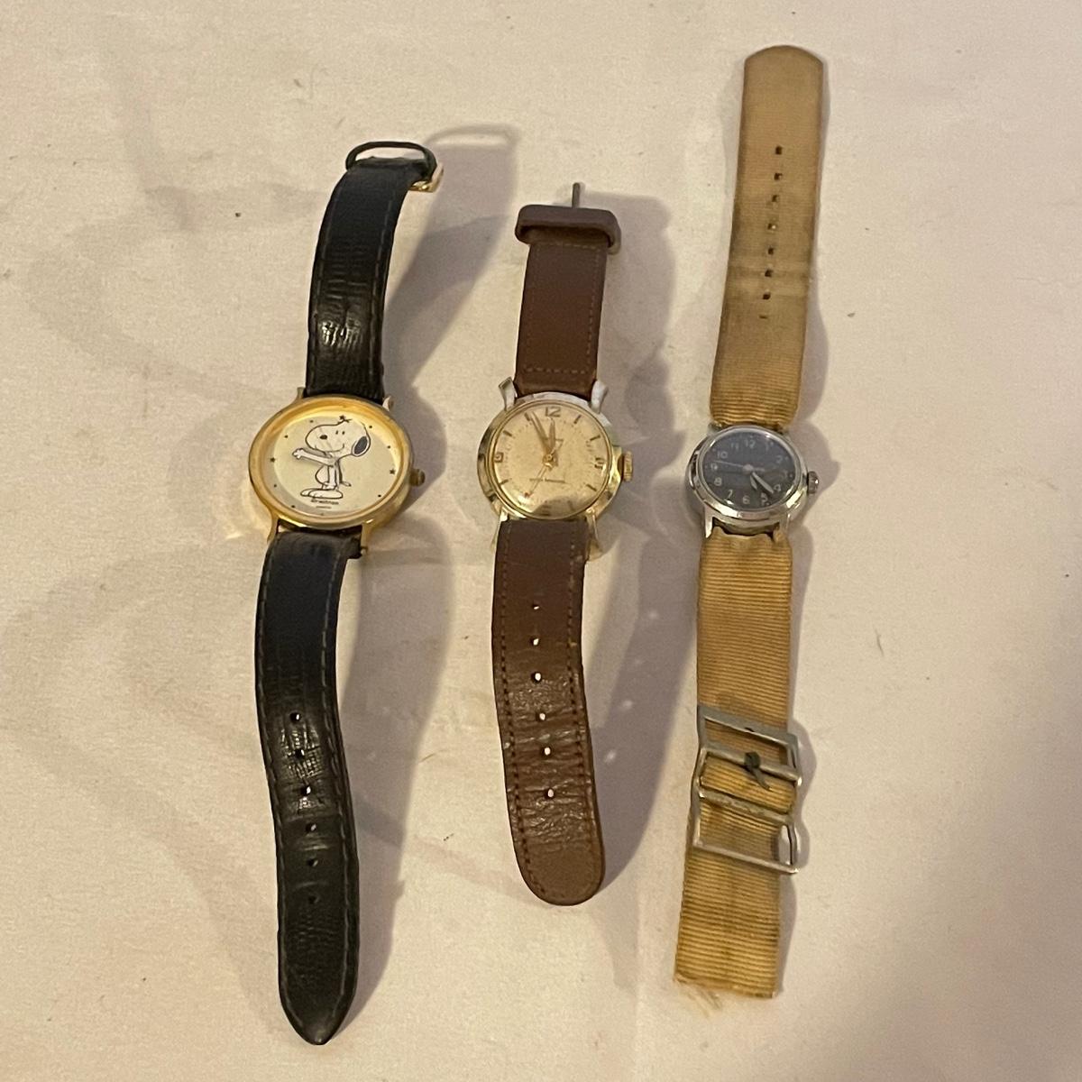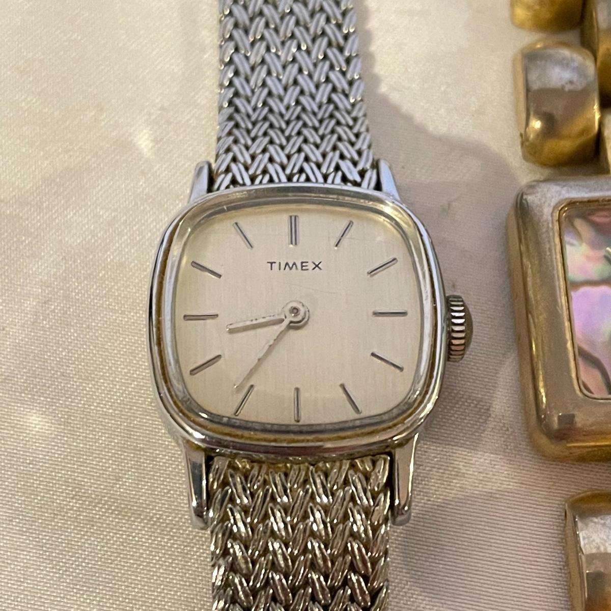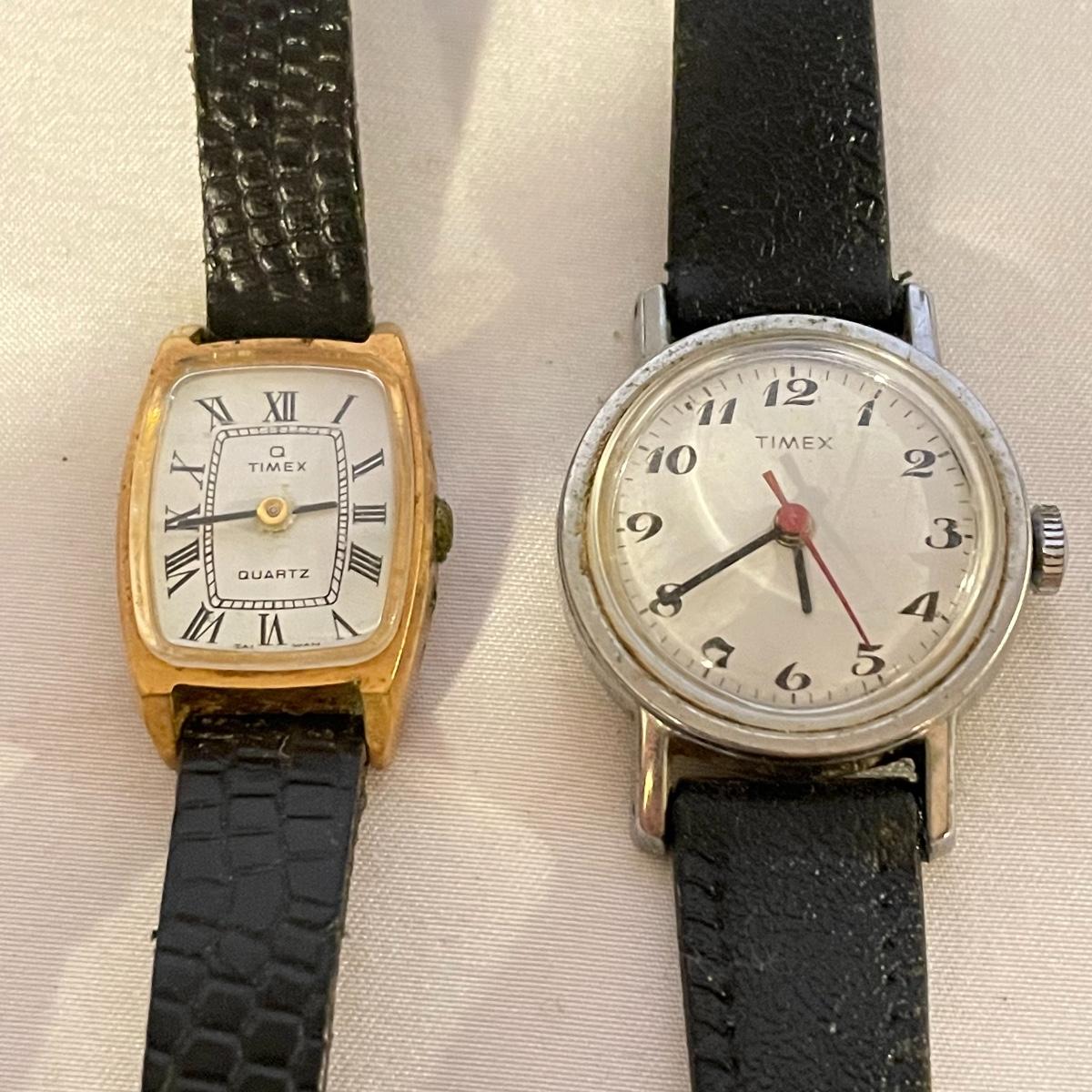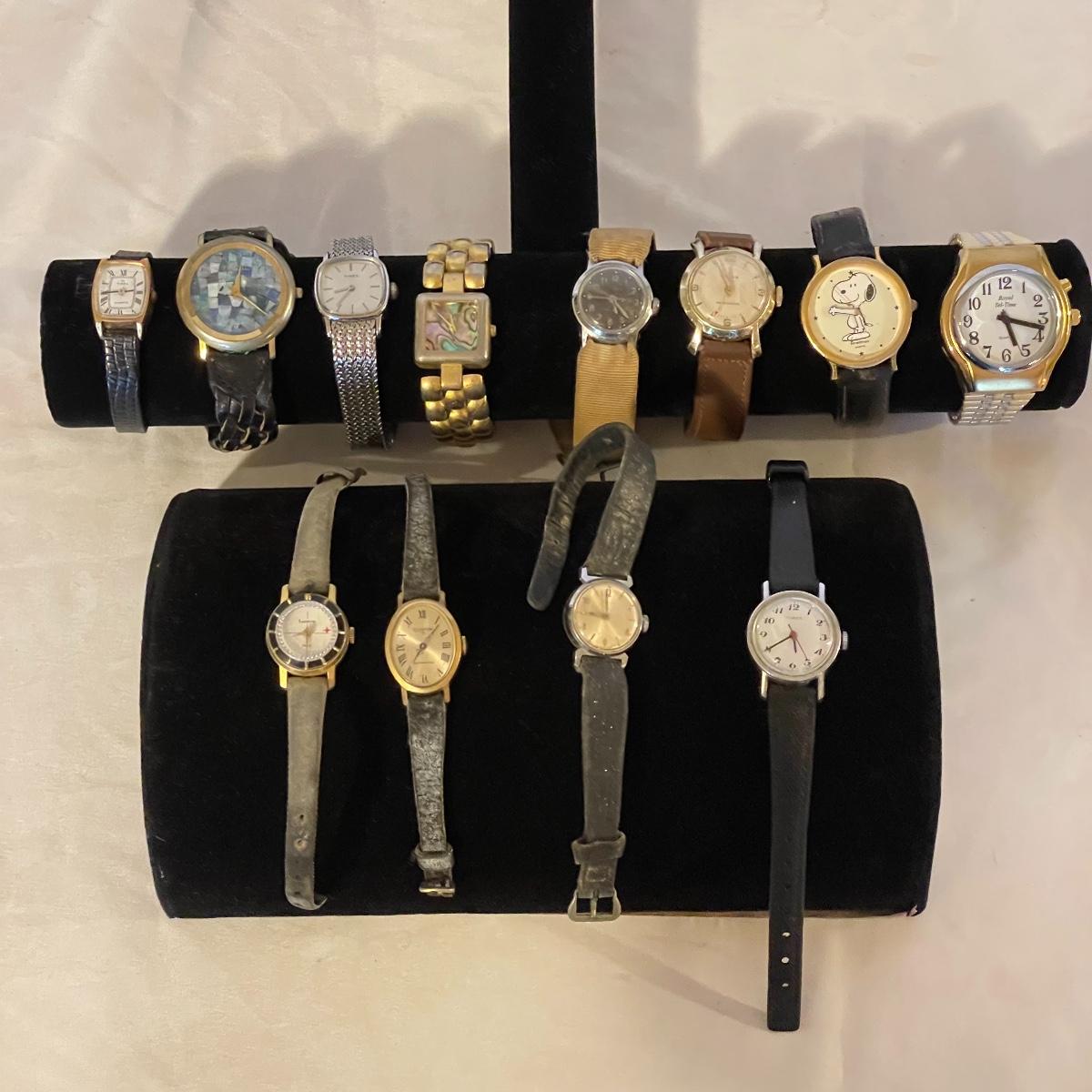 Twelve ladies watches for every occasion! We’re offering Timex, Vanity Fair, Fossil, Westclox and even Snoopy! Three watches have metal bands, one of which is a stretch band. The rest of the watches have leather or leather like bands except one cloth band. The final three watches shown in photos will need new bands, as theirs have stiffened. Watches range from 7” to 9”. See images. Shipping available.