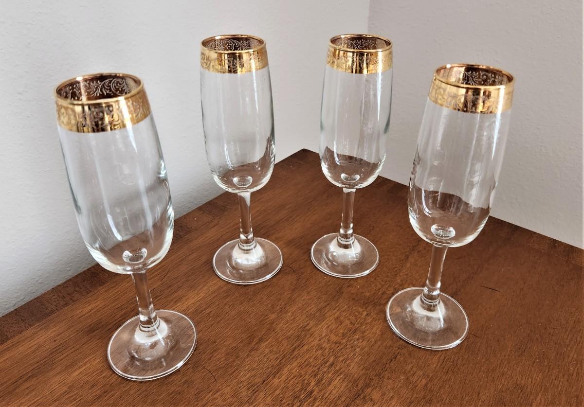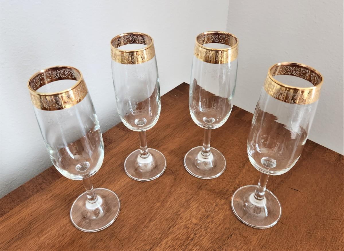 Pretty log of 4 vintage Italian Cellini Champagne flutes - 1970's. Matches the glasses in Lot #30 - each 8" tall. All in good condition.