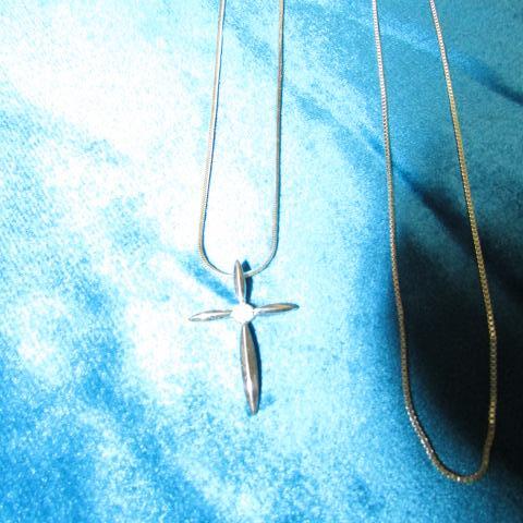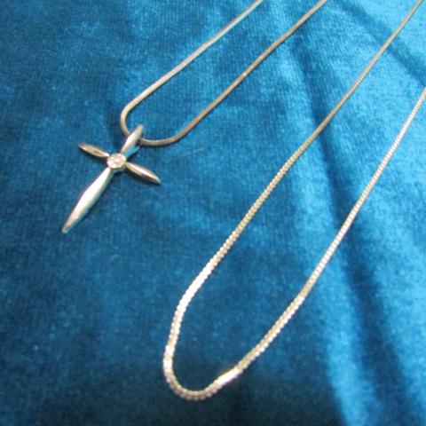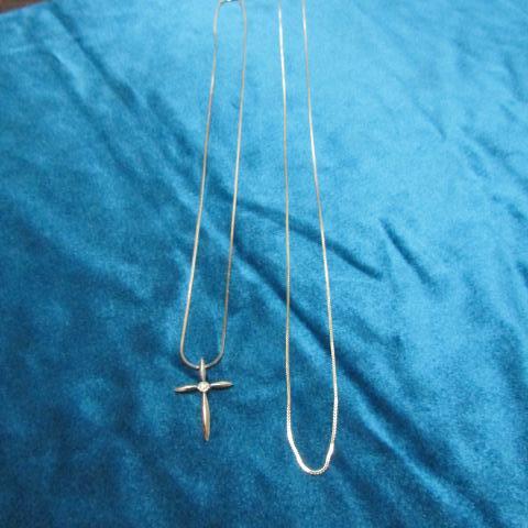 LOT 53 MARKED .925 PENDANT CROSS AND 2 CHAINS