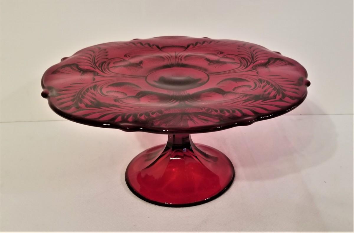 Lot #42  Nice Ruby Glass Pedestal Cake Plate