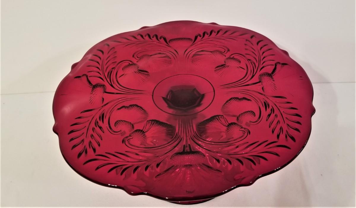 Lot #42 Nice Ruby Glass Pedestal Cake Plate