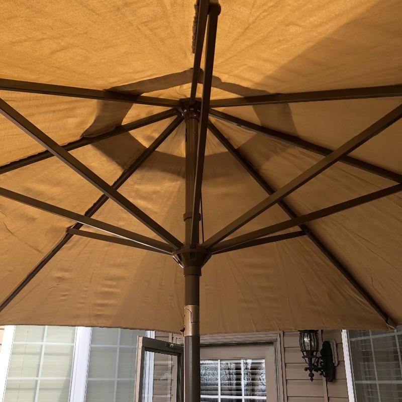 Table measures 53” diameter x 27” tall, chairs 25” x 29” x 40” and umbrella measures 88”D x 102” tall.