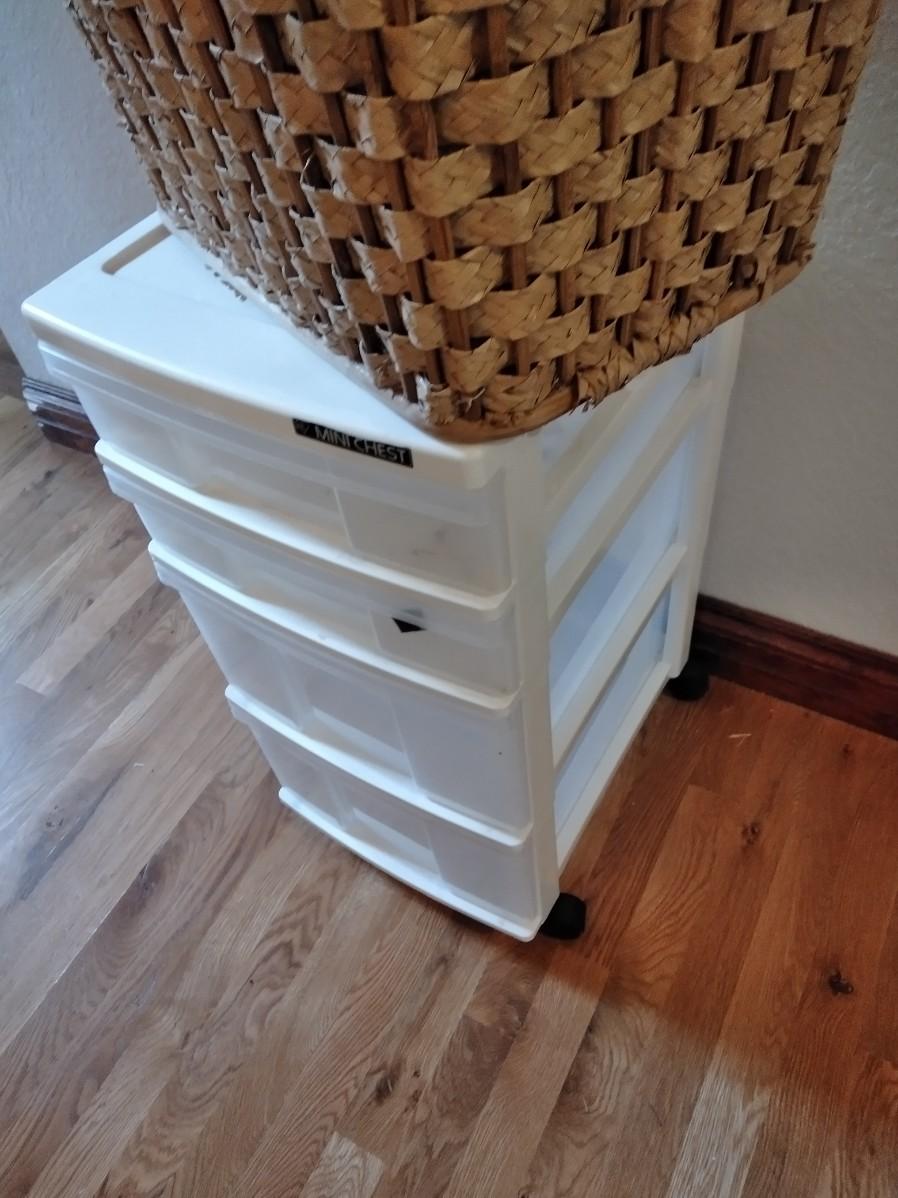 LOT 42 PLASTIC DRAWERED STORAGE WICKER LAUNDRY HAMPER (HU)
