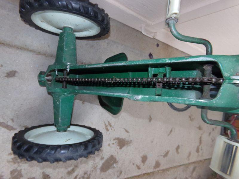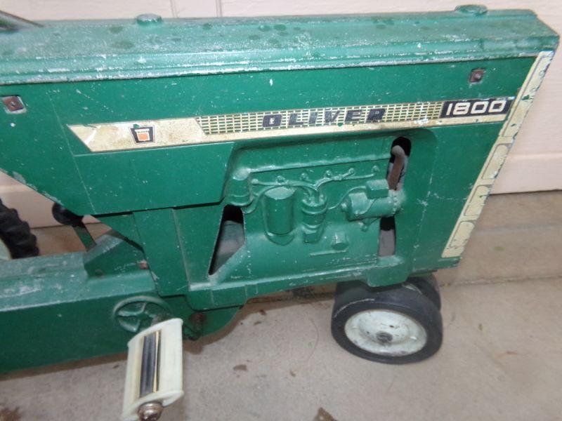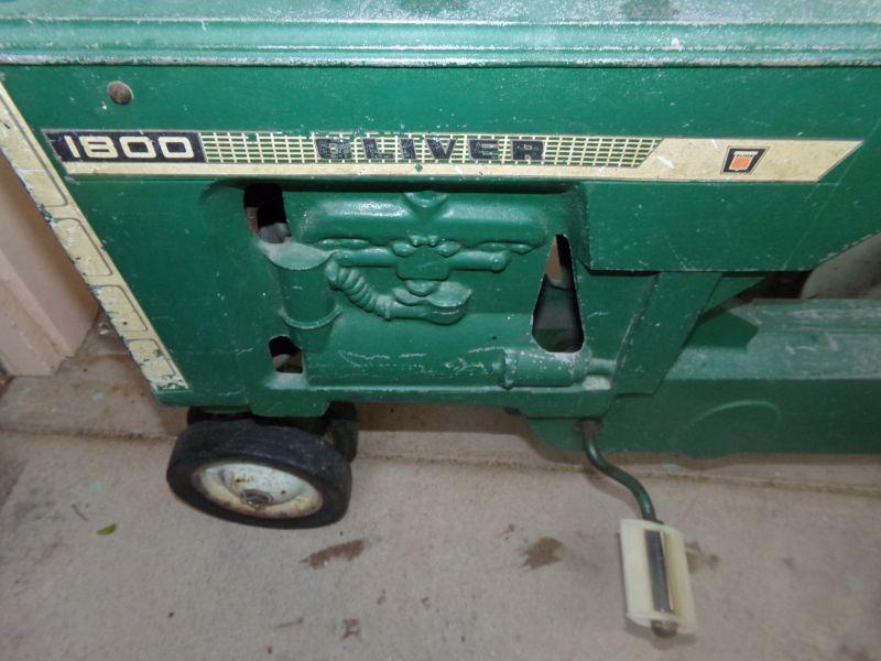 OLIVER 1800 CHAIN DRIVEN PEDAL TRACTOR HAS LOSE OF PAINT BUT NO DENTS OR RUST SEEN.