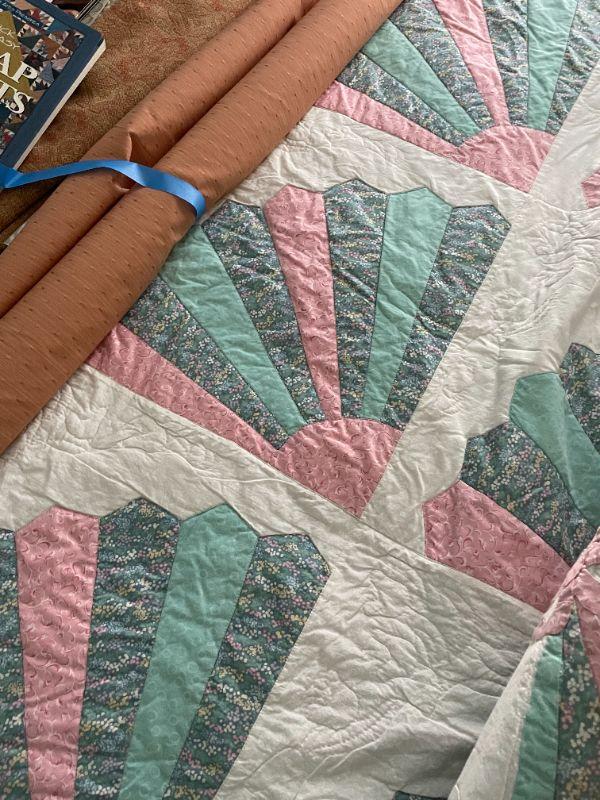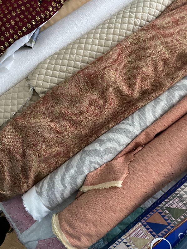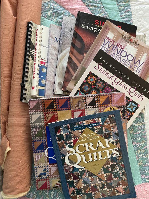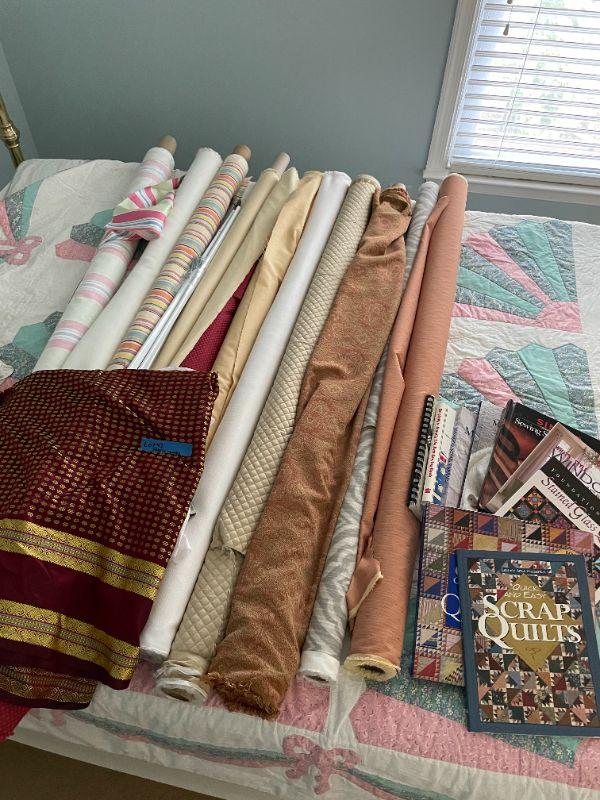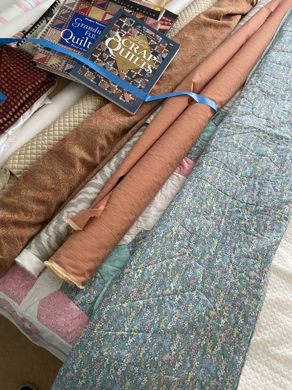 Lot 42 - Rolls of fabric , quilting books, quilt