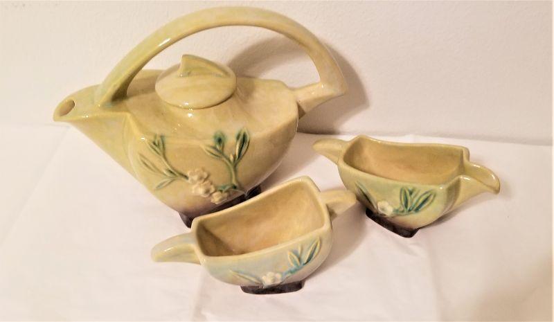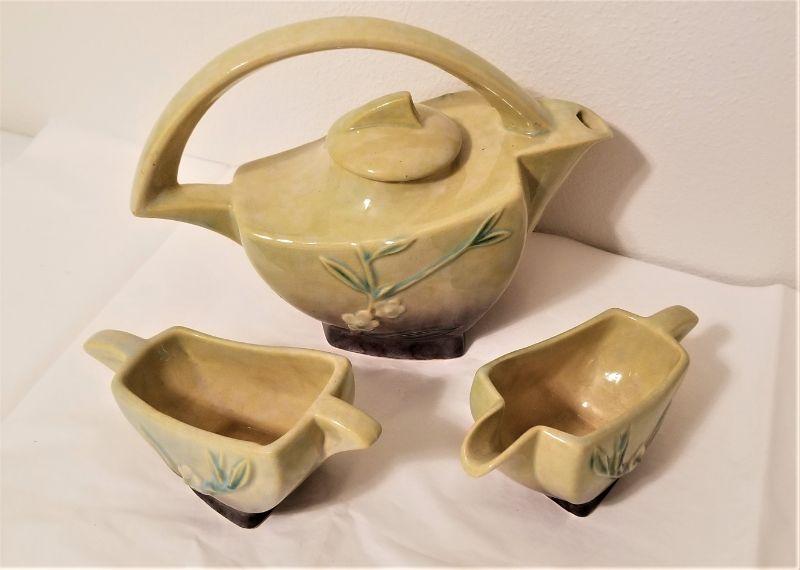 Lot #42 ROSEVILLE 3 piece Wincraft set - Teapot/2 creamers