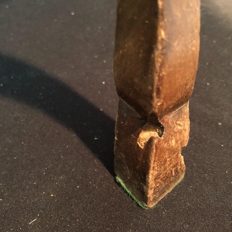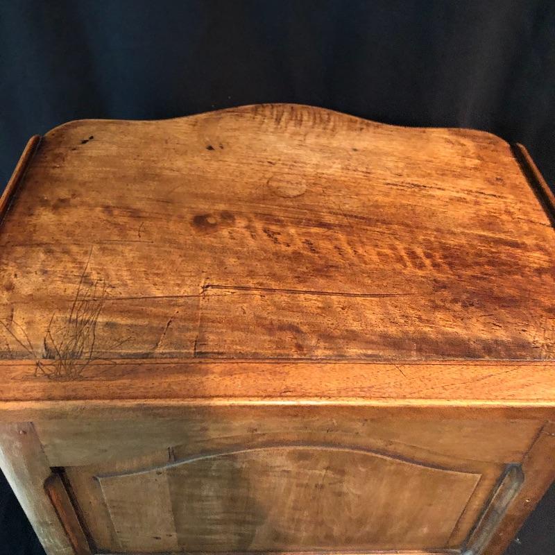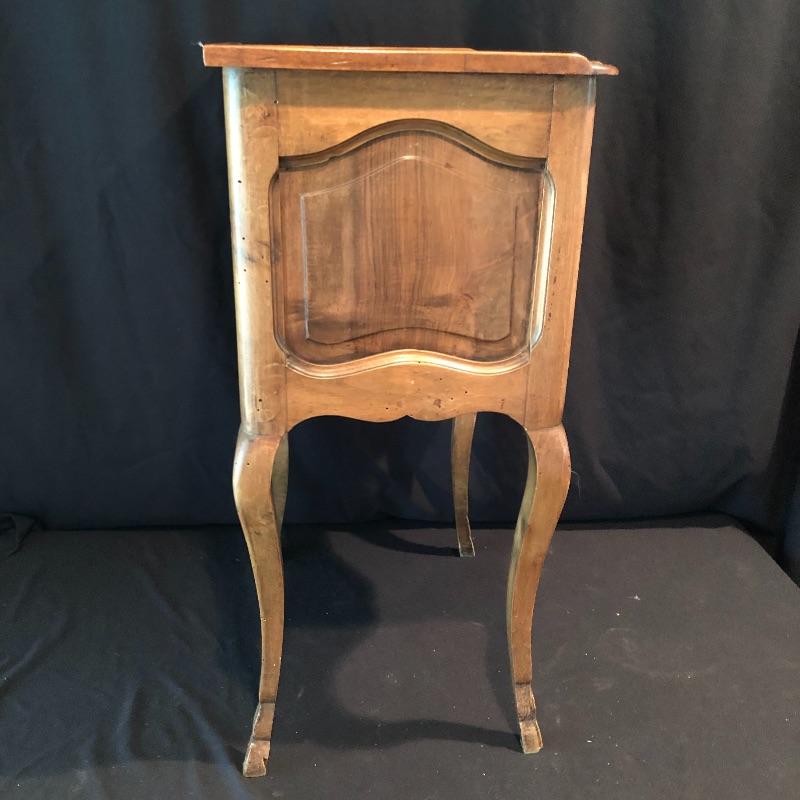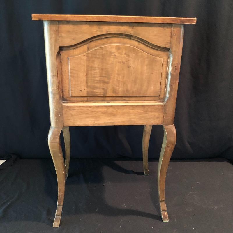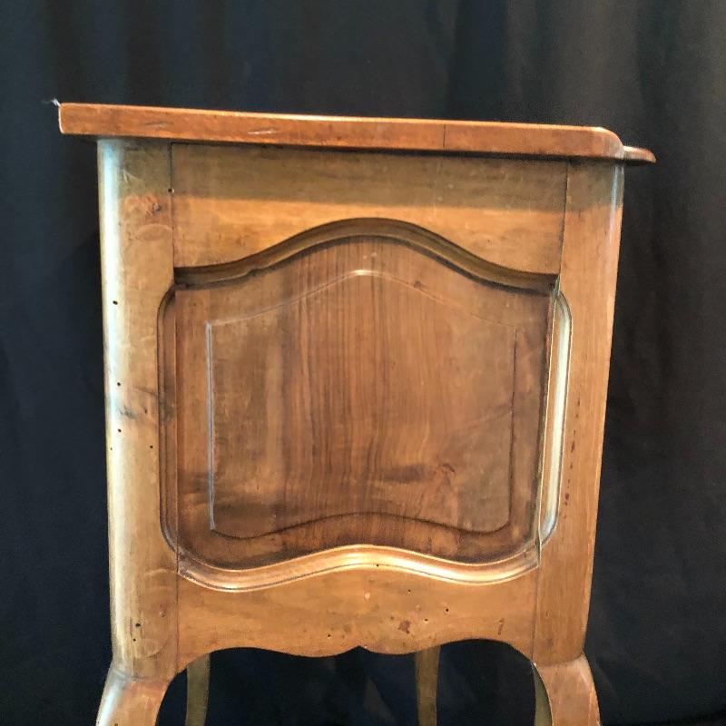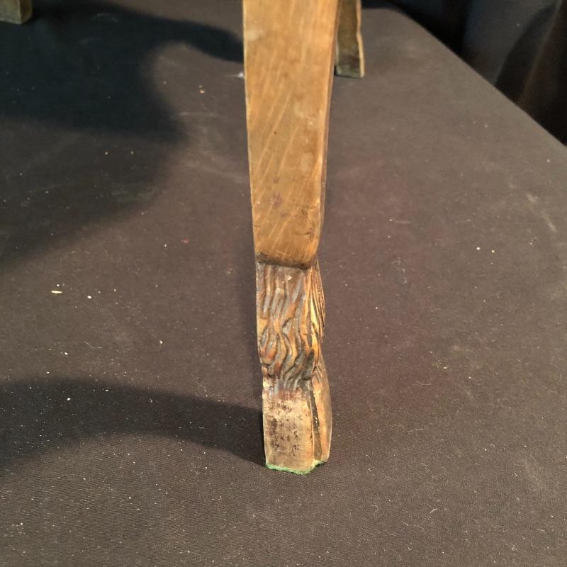 This lovely side table has a dovetailed drawer with a shelf underneath. This table is in nice shape with some scratches, chips on one leg and what appears to be wormholes, see pictures.