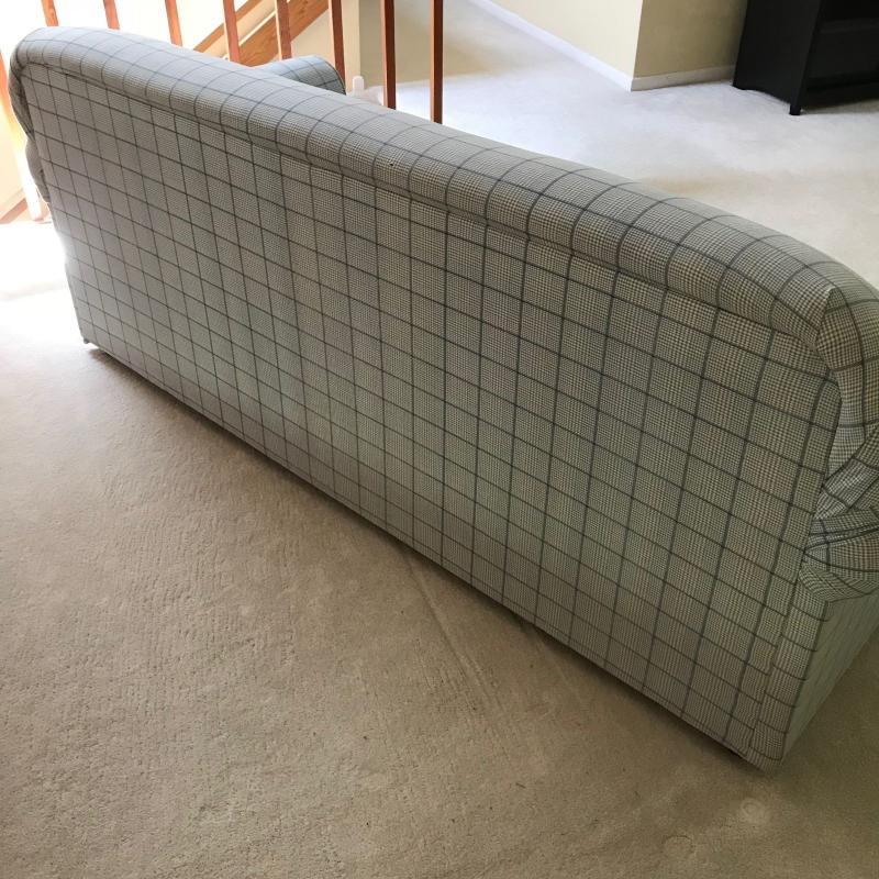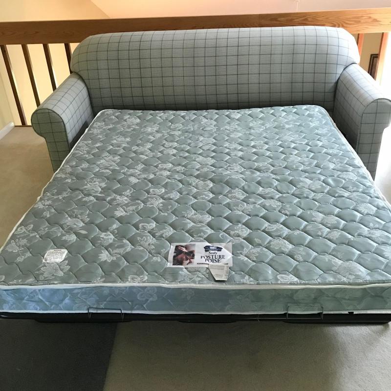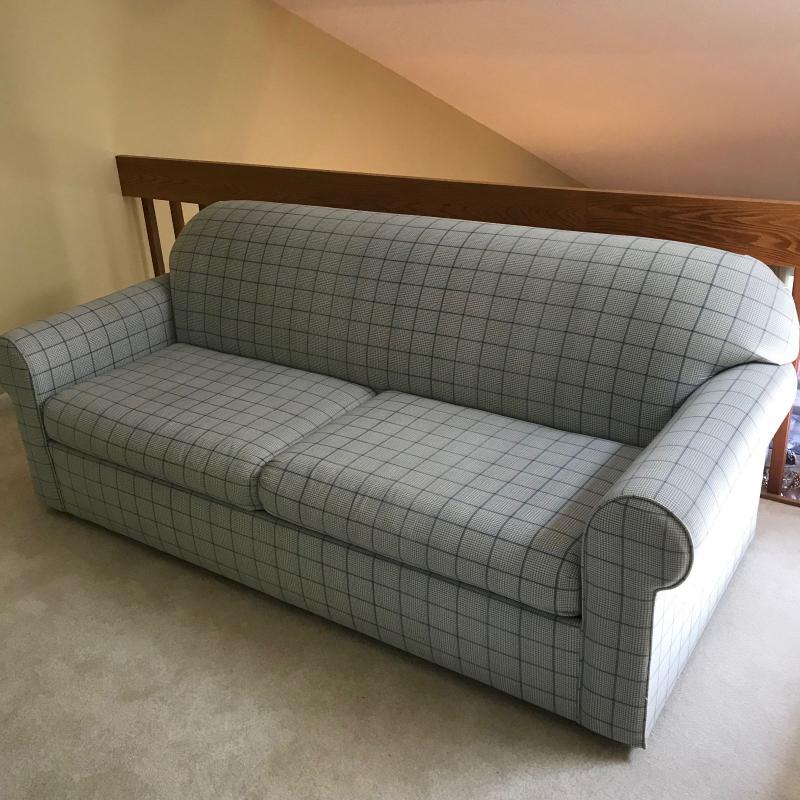 Blue plaid queen sleeper sofa. Excellent condition. 85” x 36” x 34”. No shipping. Please note this item is up a flight of stairs. Bring help to load!