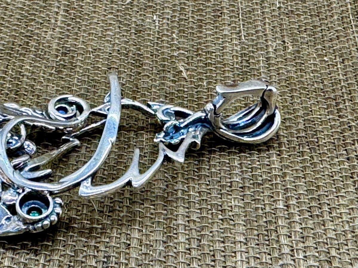 LOT 42 - Sterling Pendant w/ Birds and stones in AS IS Condition. Originally this was sold with a bird hanging from the middle part that is not with the pendant when we found it at the estate. With that said, it is still a very pretty piece and the birds are delightful. It weighs 19.90 grams. We are starting the bid at $1.00 due to the missing bird.