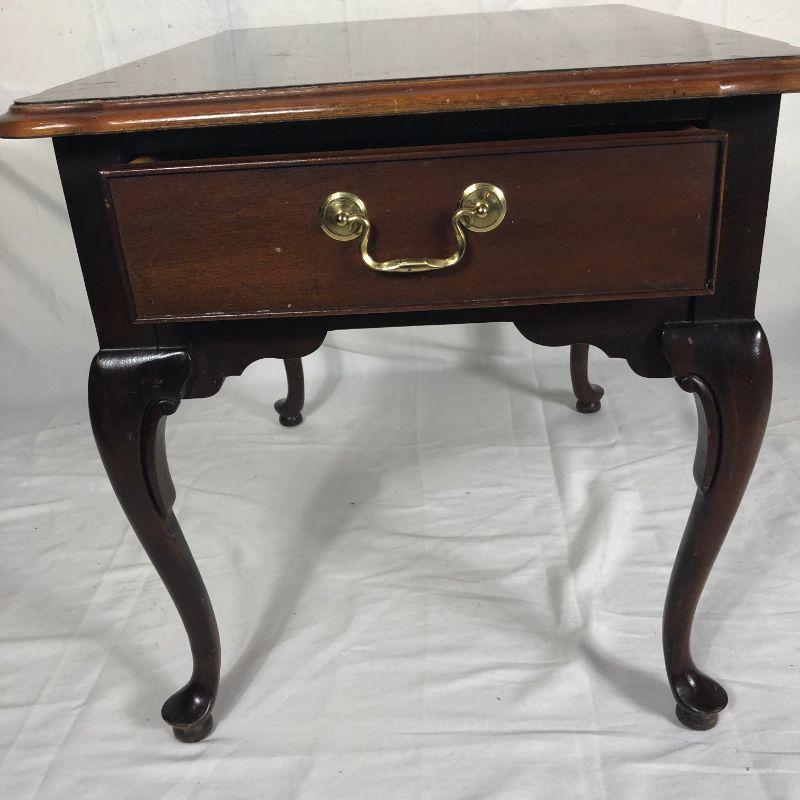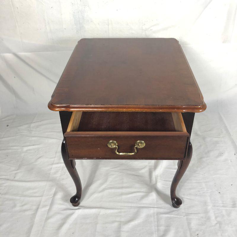 Nice quality Thomasville End table with one drawer. Queen Anne style legs. 22" wide x 28" long x 23" high.