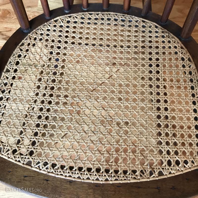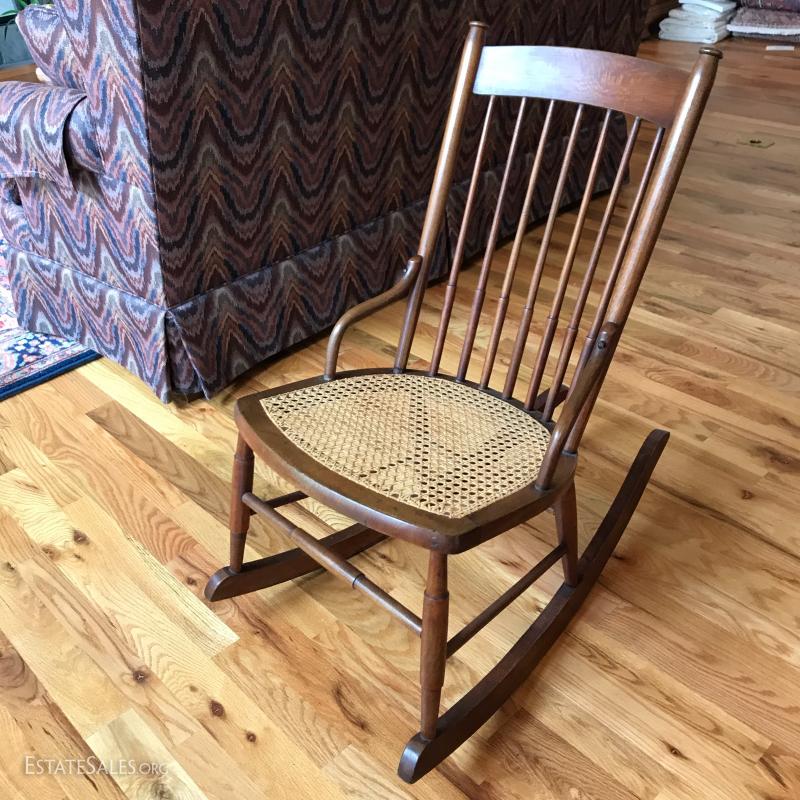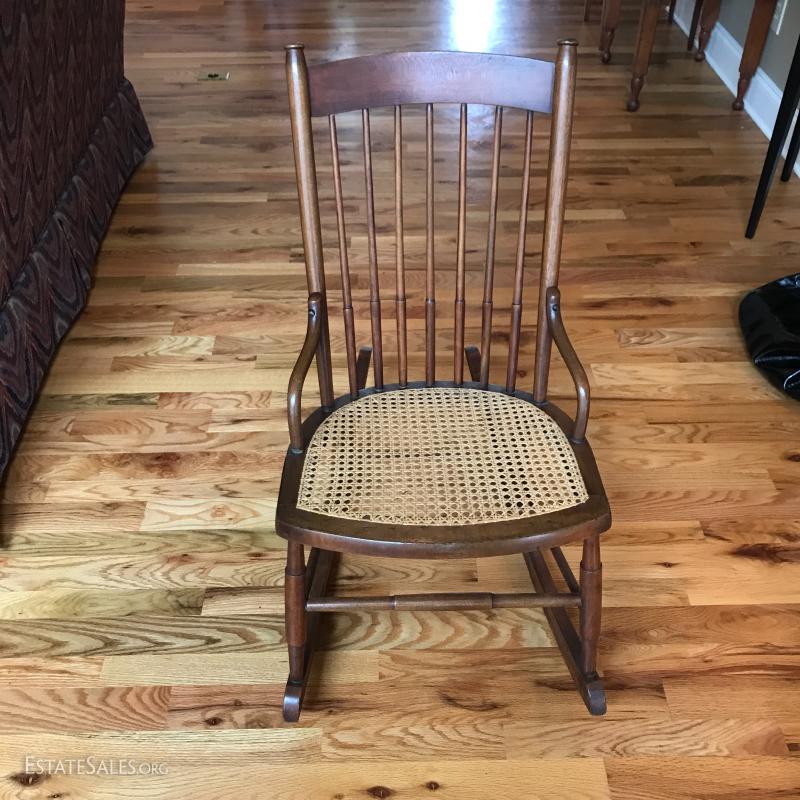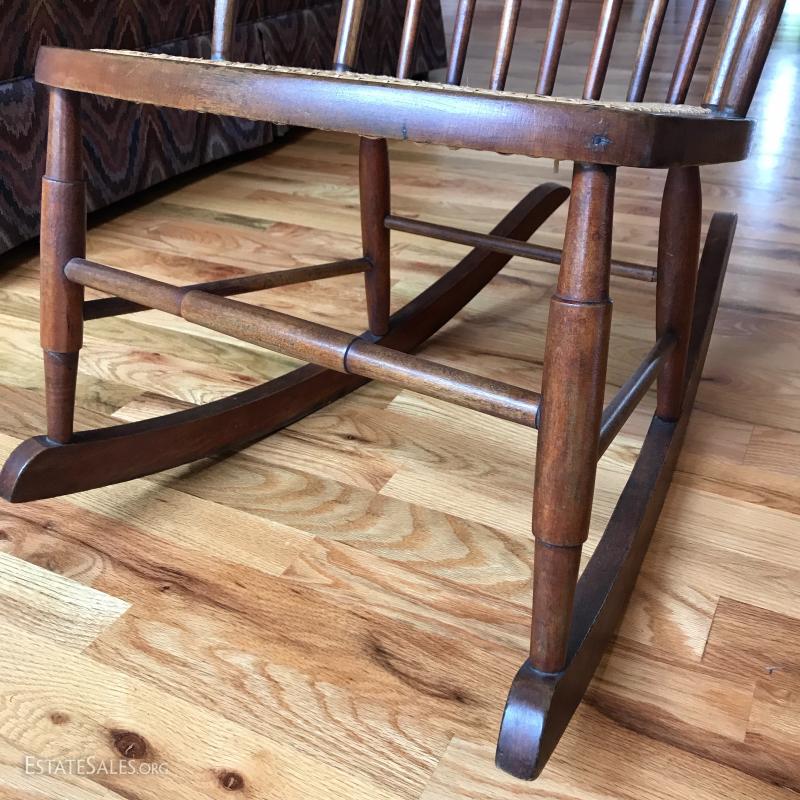 Two chairs and small stool. Vintage rocker with a cane seat,
