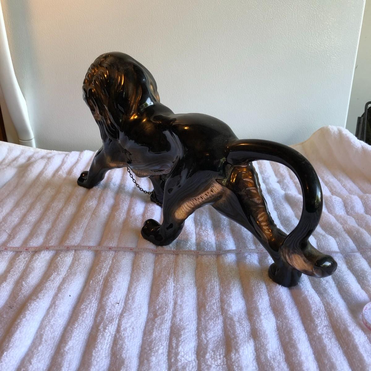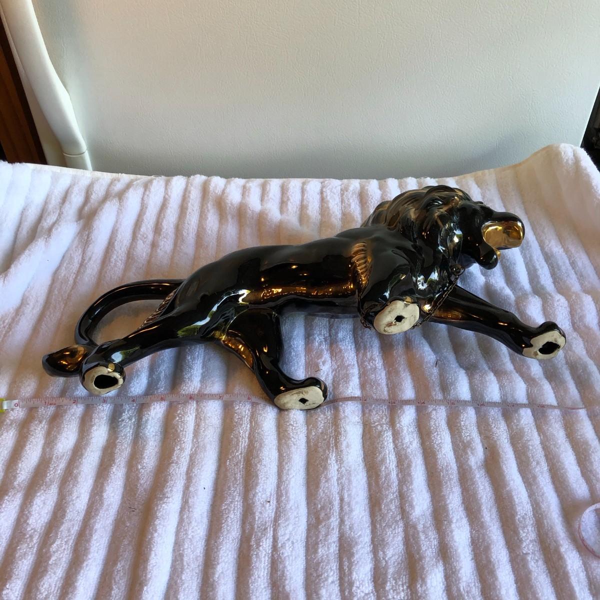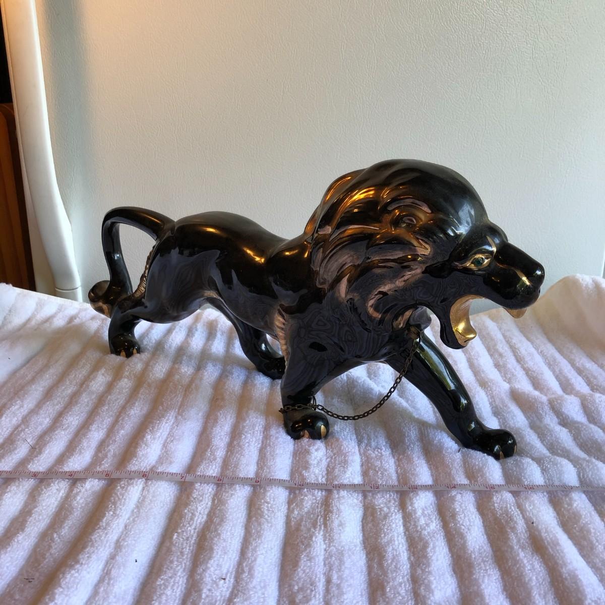 Gorgeous, majestic, powerfull lion that is painted black with gold paint highlights and green crystal eyes. No issues found. About 18.5" long.