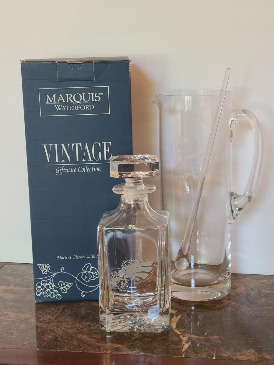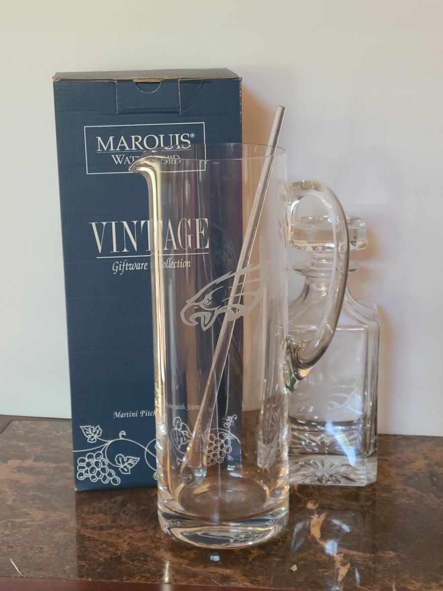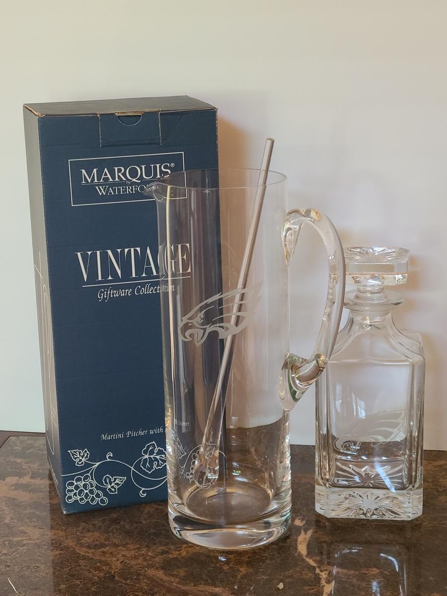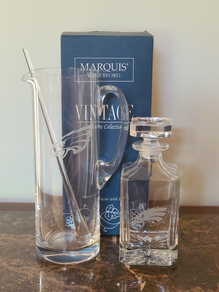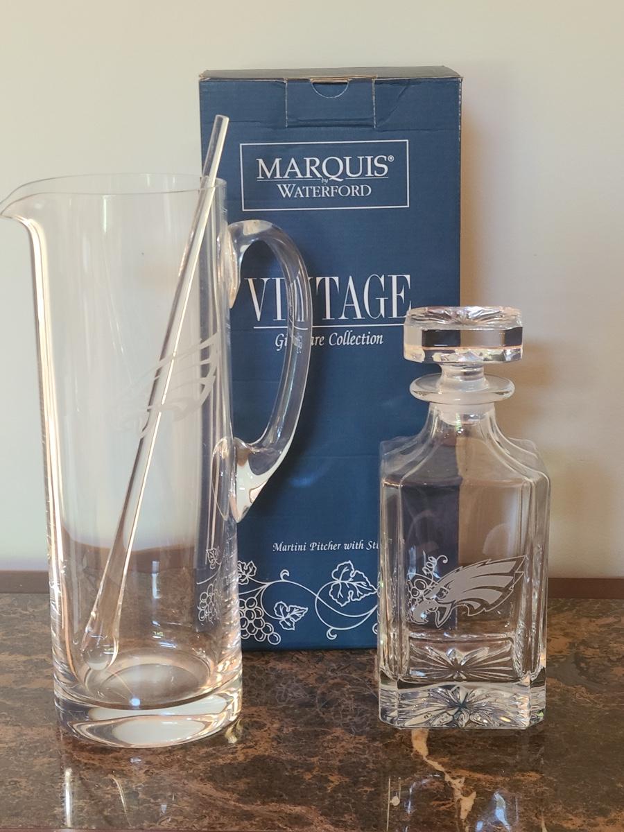 Lot 42: Marquis Waterford Phil. Eagles Vintage Martini Pitcher and Decanter (Great Gifts)
