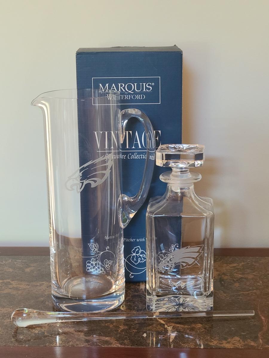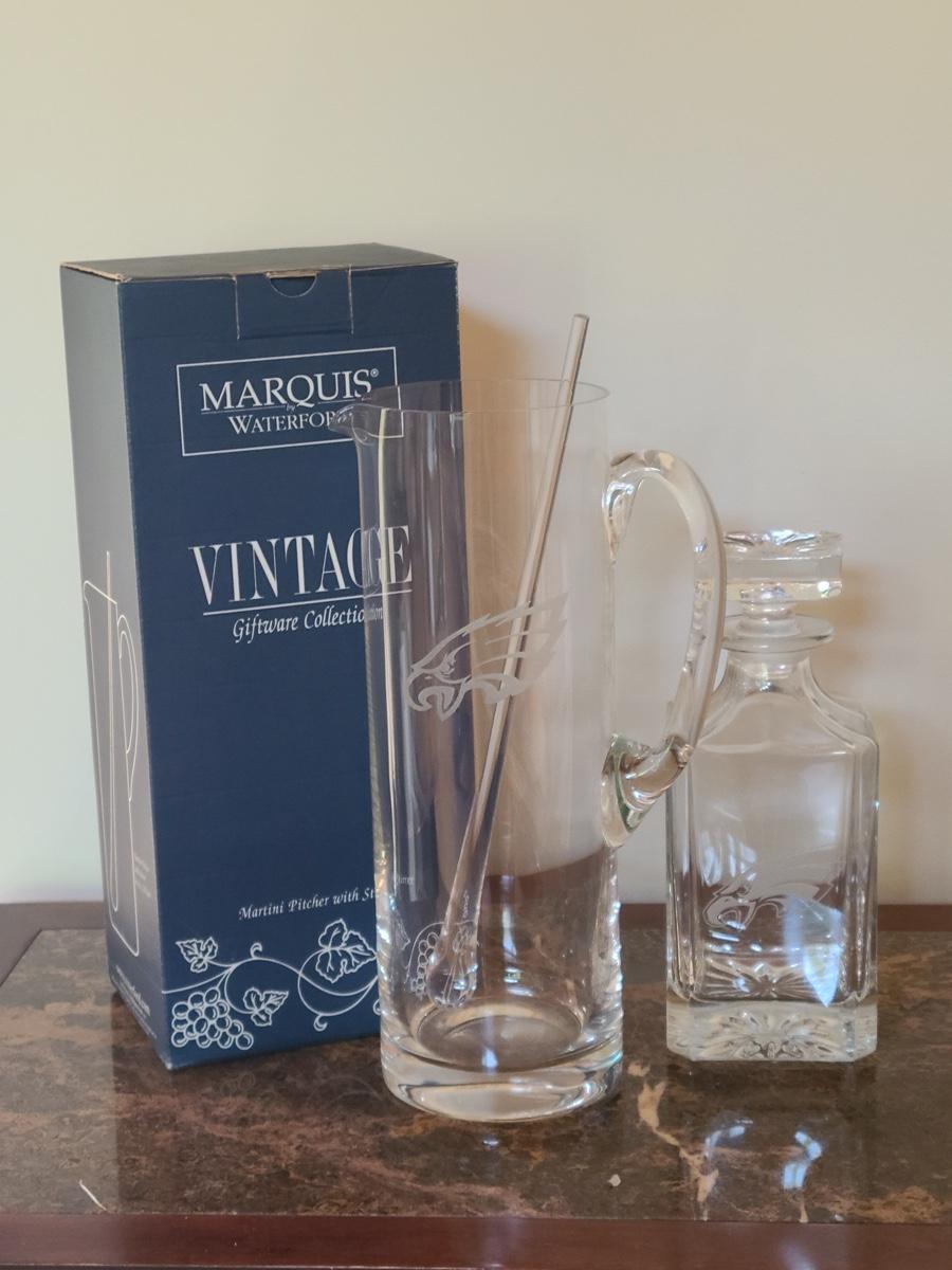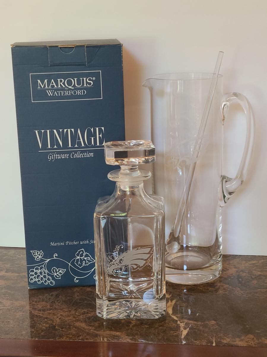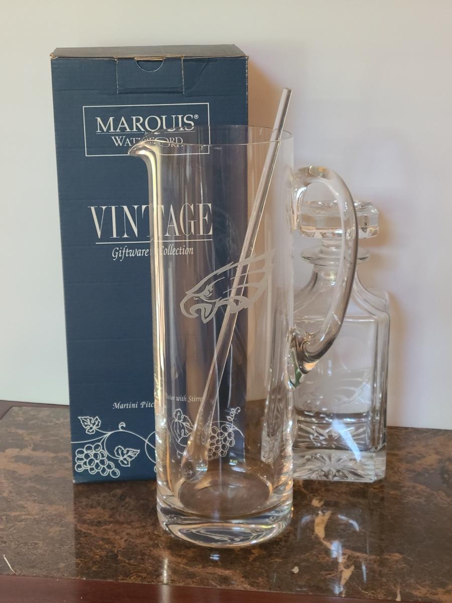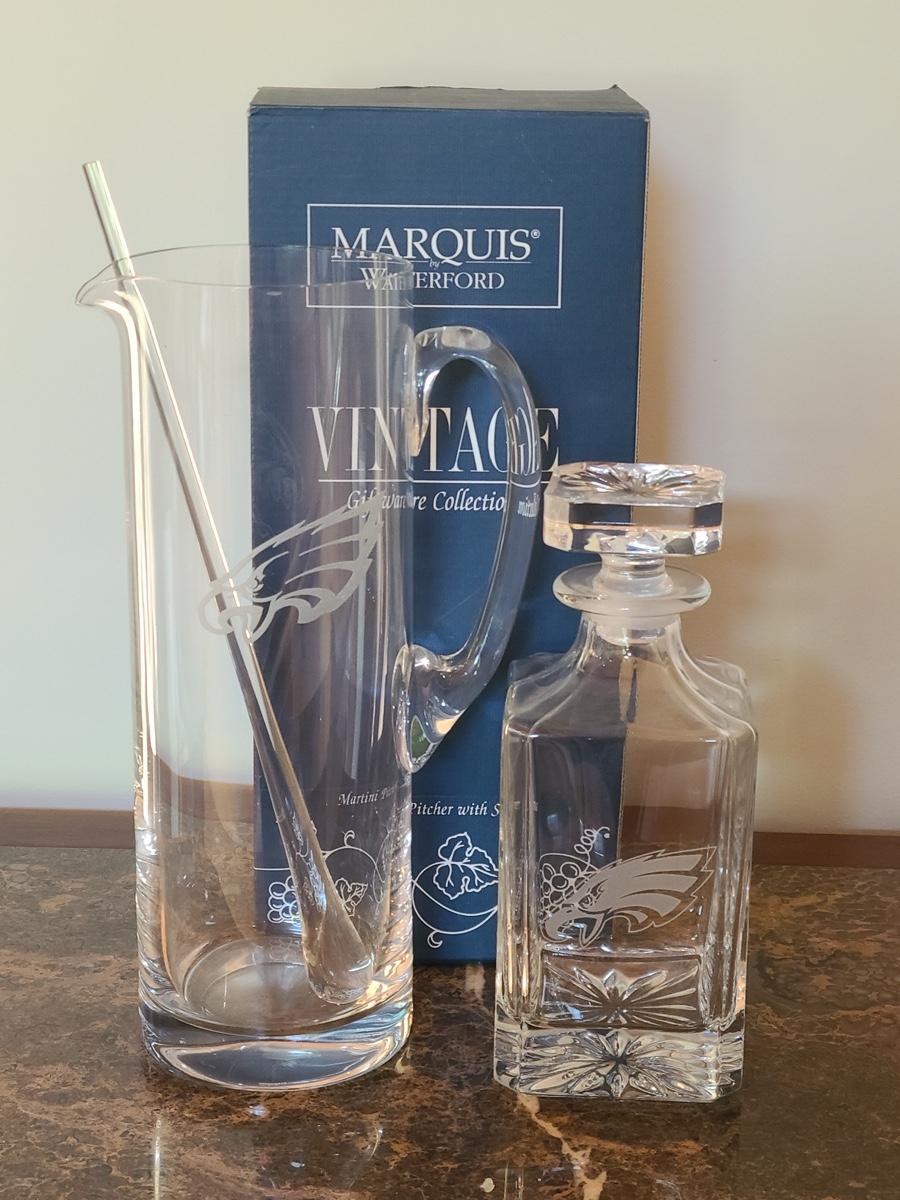 Lot 42: Marquis Waterford Phil. Eagles Vintage Martini Pitcher and Decanter (Great Gifts)