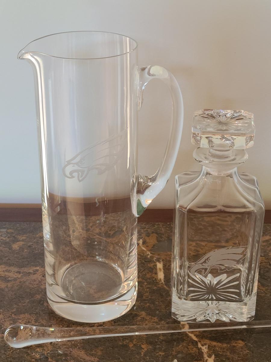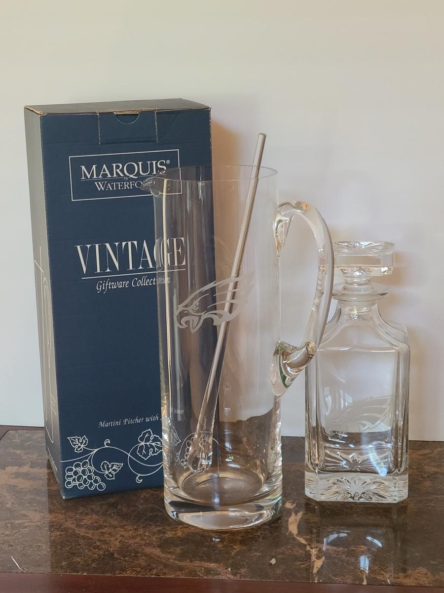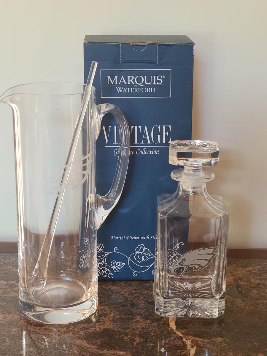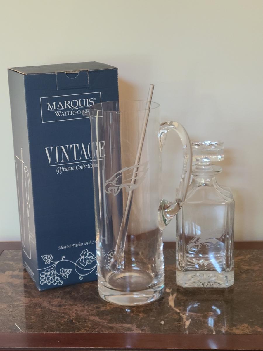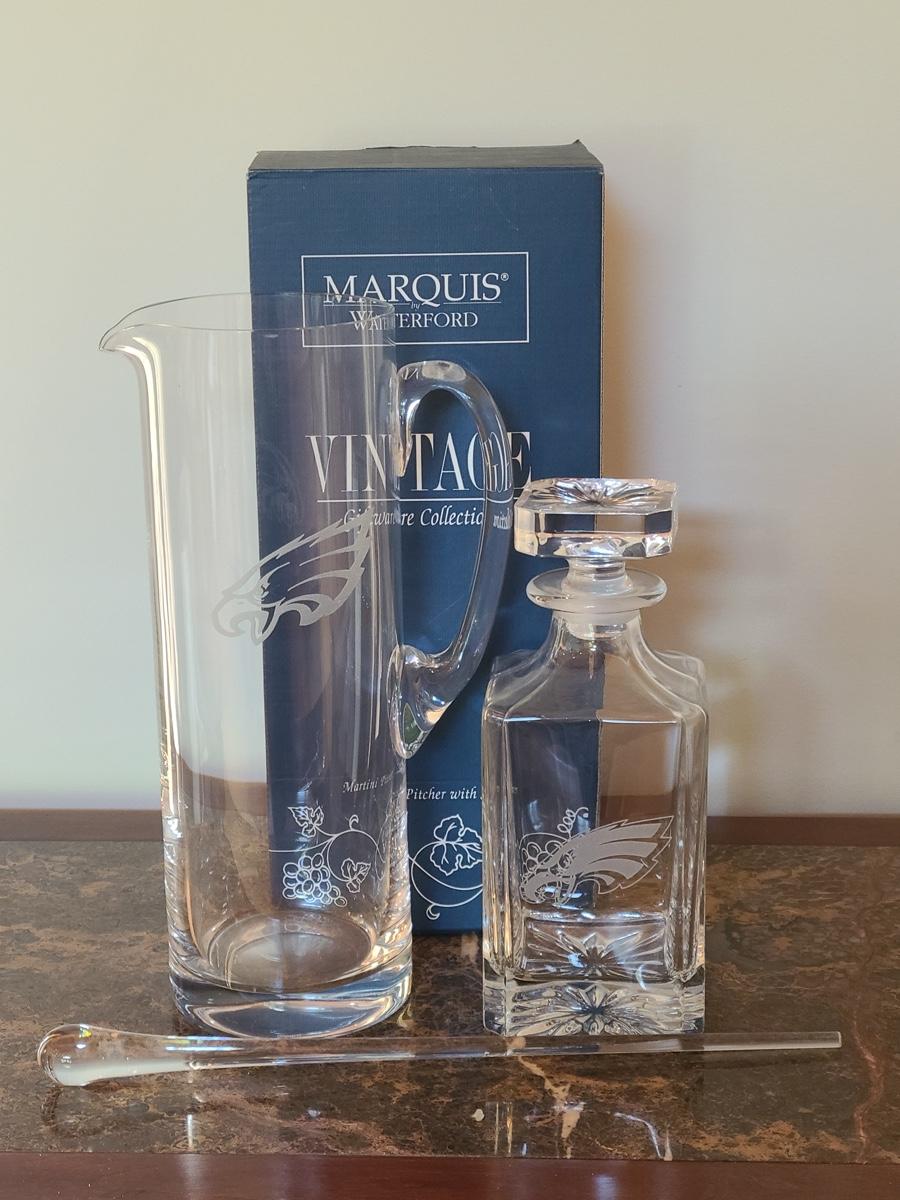 Lot 42: Marquis Waterford Phil. Eagles Vintage Martini Pitcher and Decanter (Great Gifts)