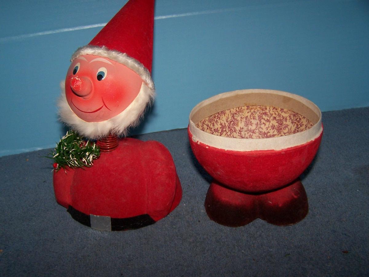 THIS IS A WONDERFUL VINTAGE SANTA BOBBLE HEAD CANDY CONTAINER!!! UNMARKED, PROBABLY, WESTERN GERMANY... 12 3/4'' TALL.. LIGHT WEAR/RUBS--USED...