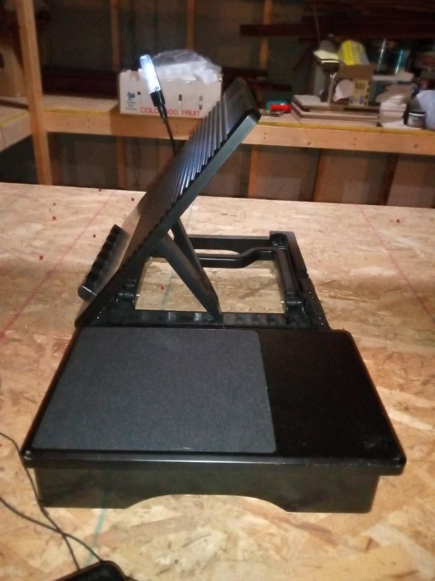 PLASTIC LAP DESK WITH A LIGHT AND ADJUSTABLE ANGLE PLATFORM, MICROSOFT LIFE CHAT LX-3000
