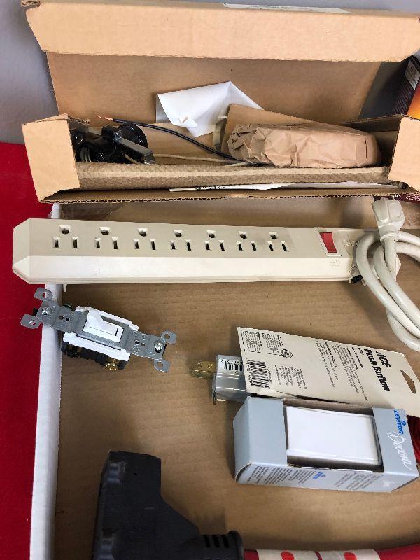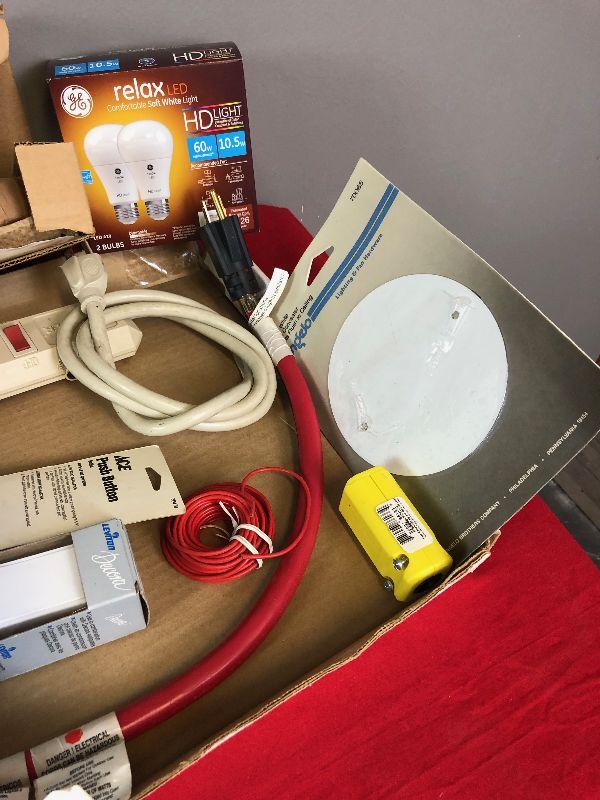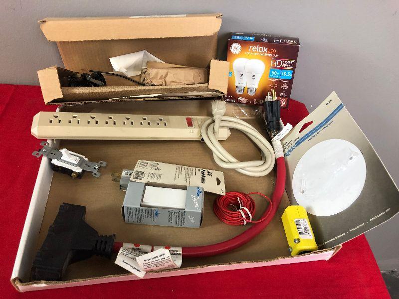 Lot 420 Electrical lot: switch, wire, plug bar