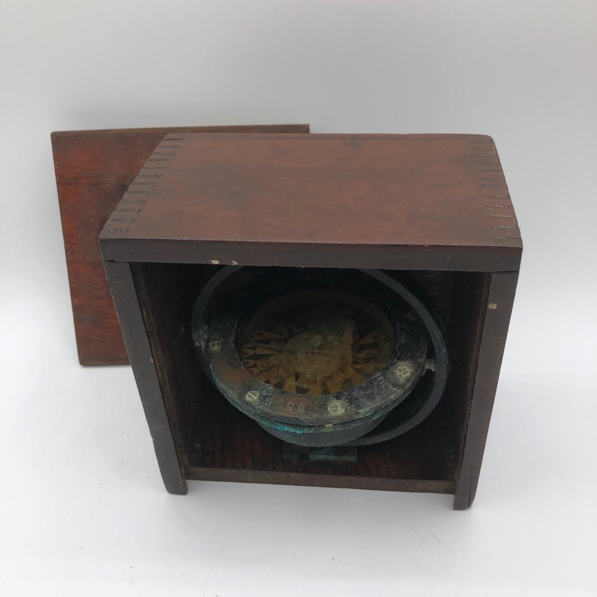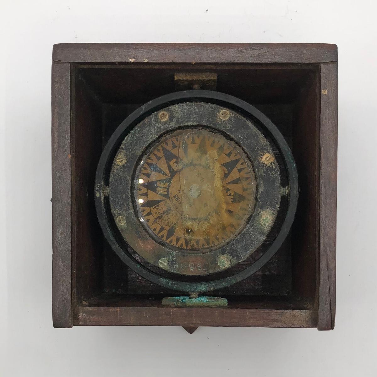 LOT 420L: Antique Stairs Halifax Boxed Ship’s Compass WW1 era