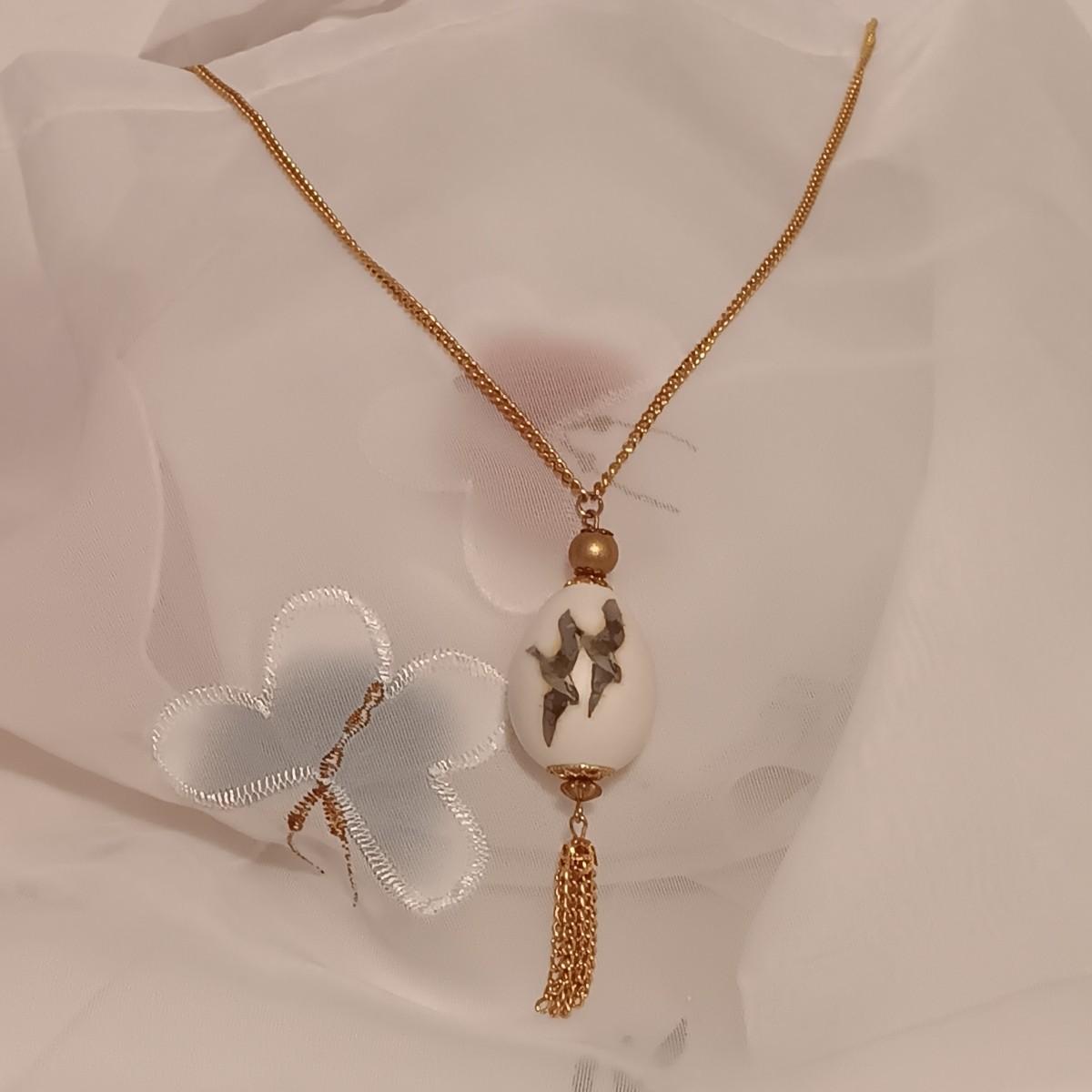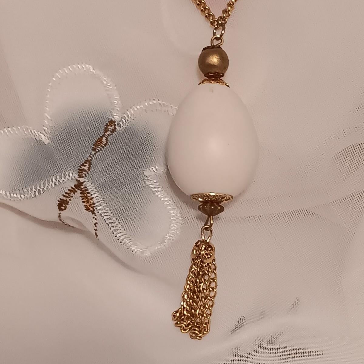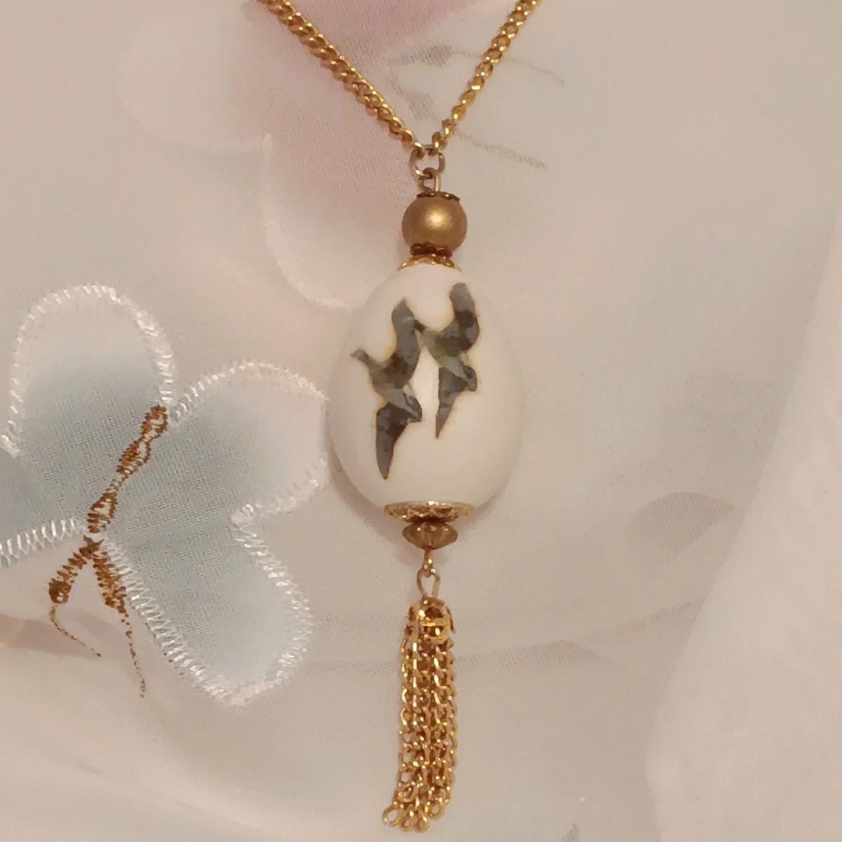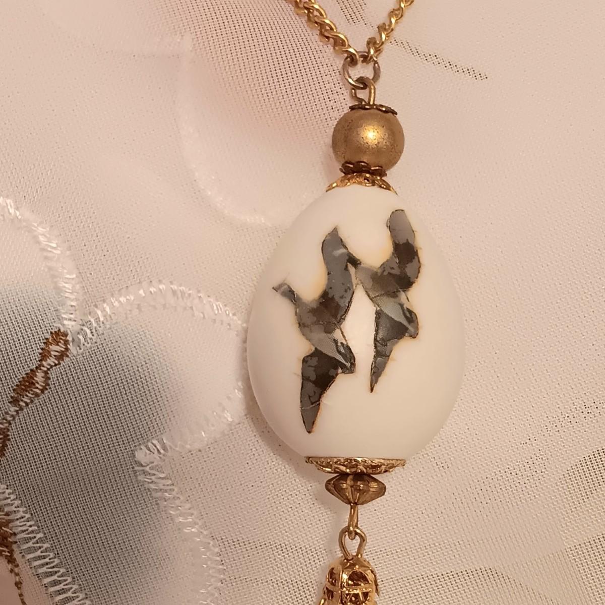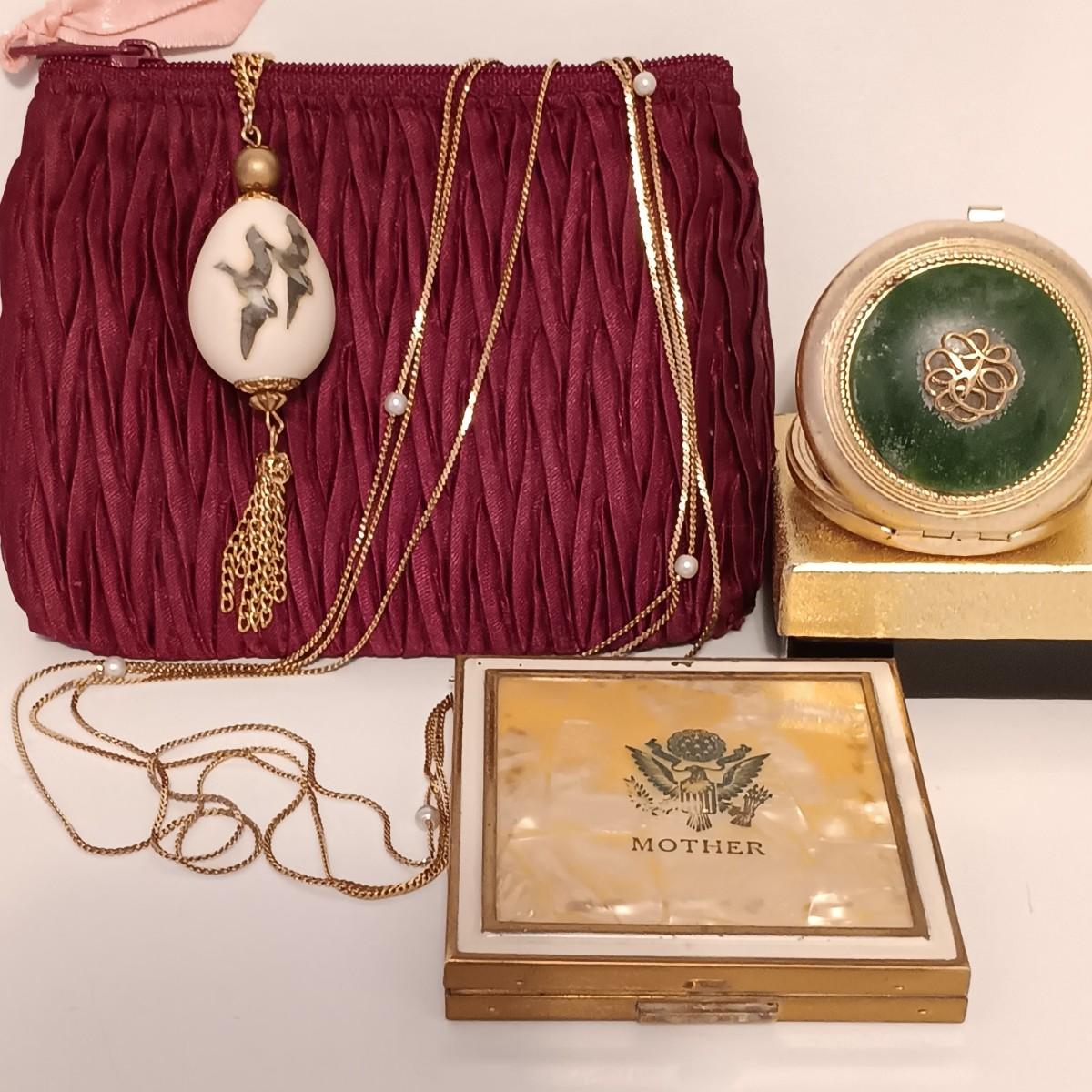 LOT 421: Handpainted Egg Necklace, Faux Pearl and Gold-Tone Necklace, Revlon Love-Pat Misty Rose Compact & More