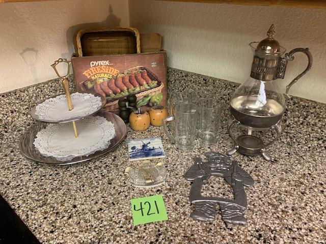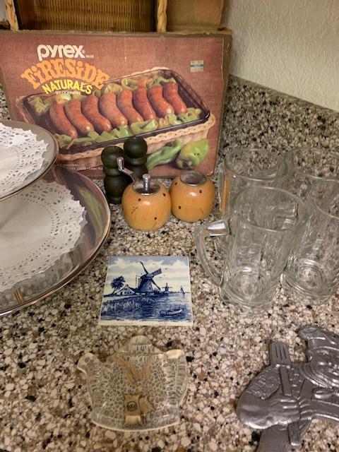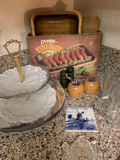 Vintage Pyrex dish with original box, 2 tier serving dish, and more“🦆