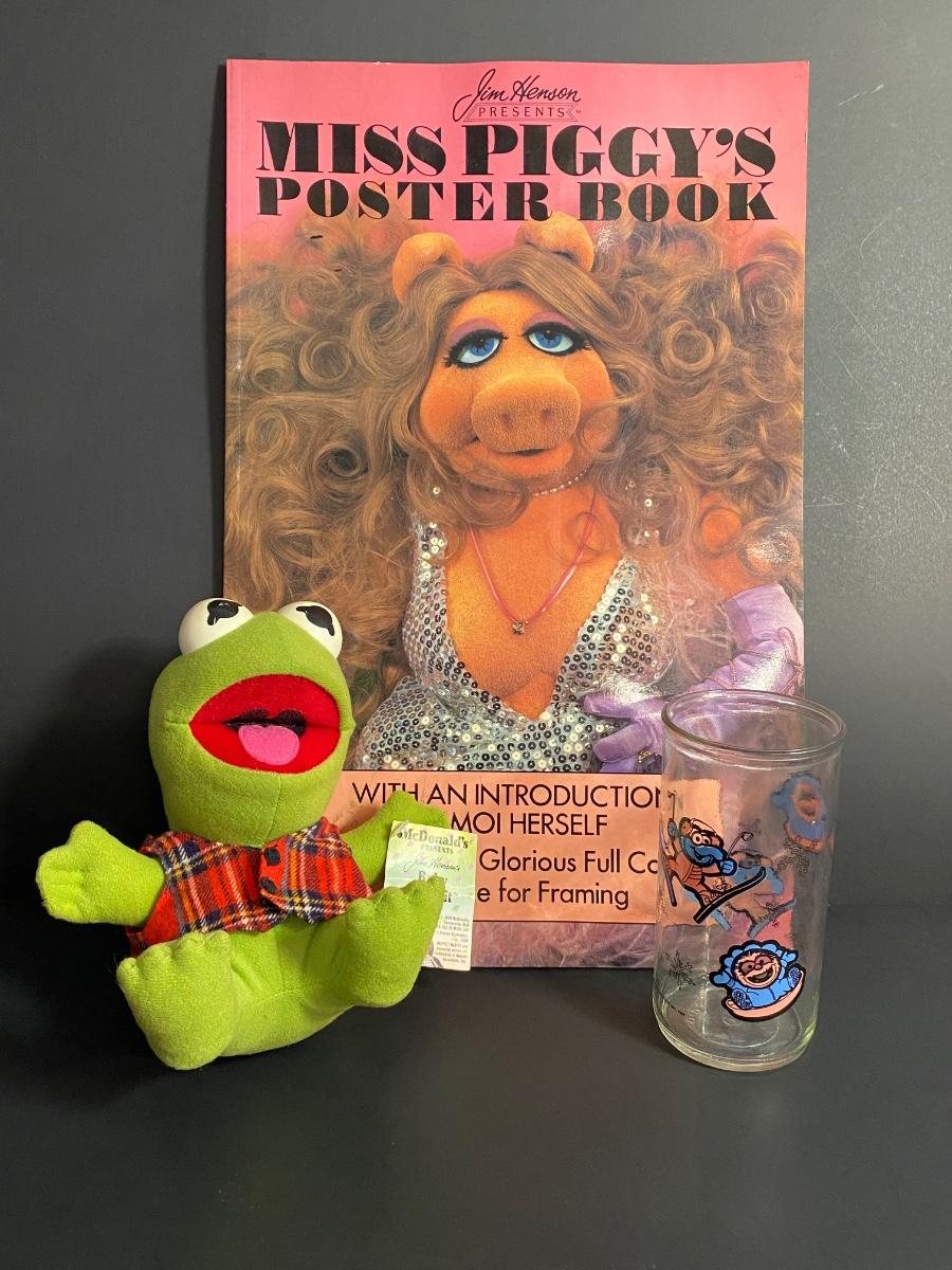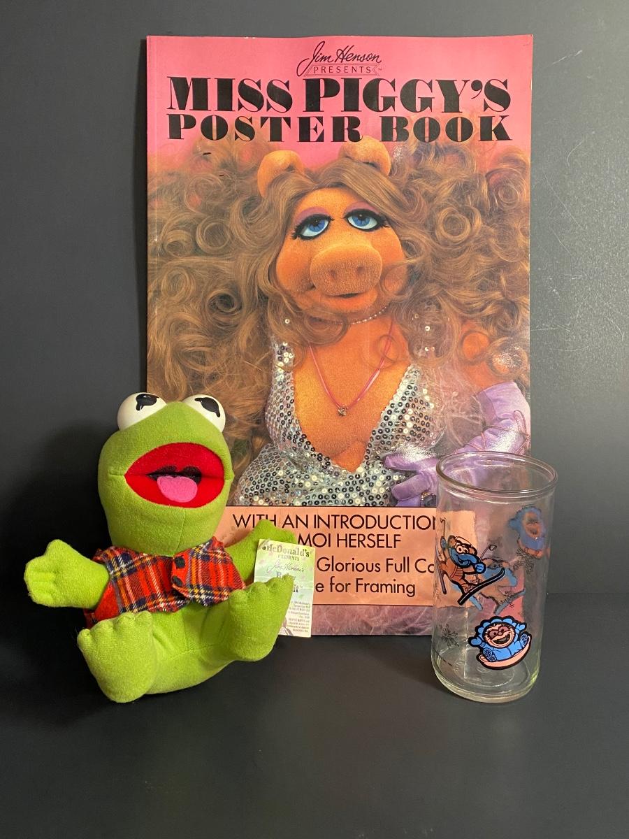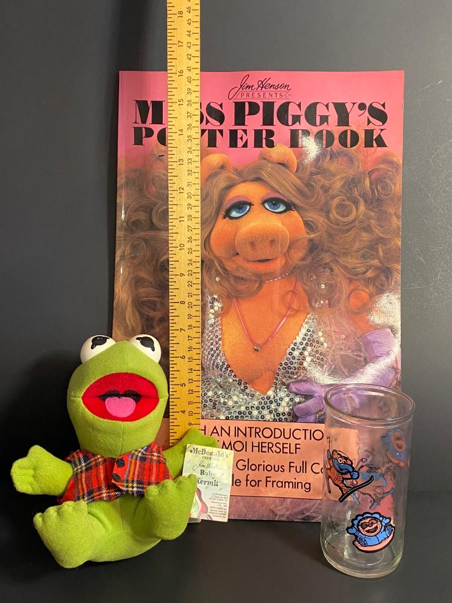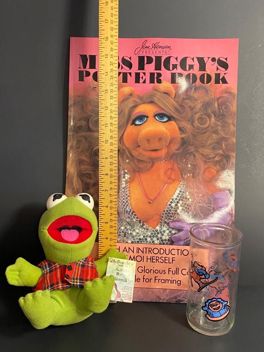 Miss Piggy poster book filled with large colorful prints. Muppet baby Kermit plush doll and 1989 Gonzo glass. Please see all pictures as they are the best representation of the items. The pictures show condition, measurements if taken, and what is included in the lot. Due to the large amount that we photograph and the time frame, we are not always able to take measurements. All items unless noted, are pre-owned and have been used. If you purchased furniture, you must bring help. We do not allow one person to carry large furniture out on their own. Any damage to the walls, floors, or property is the buyers responsibility to fix, and the damage will be noted and you will charged for repairs, your bidding constitutes your understanding of these terms. Bring help, tools and a truck for the safety of our client’s homes, and your personal safety. Company policy. Thank you.