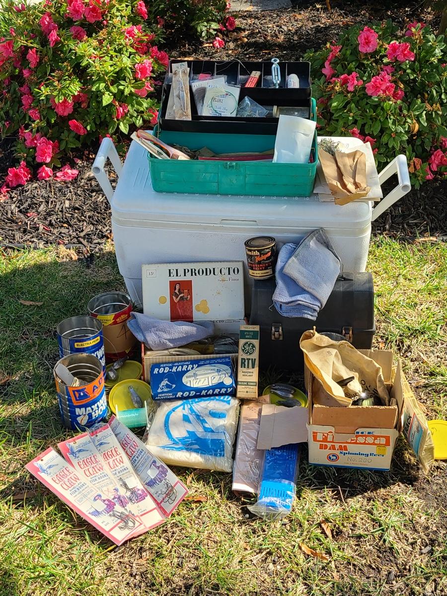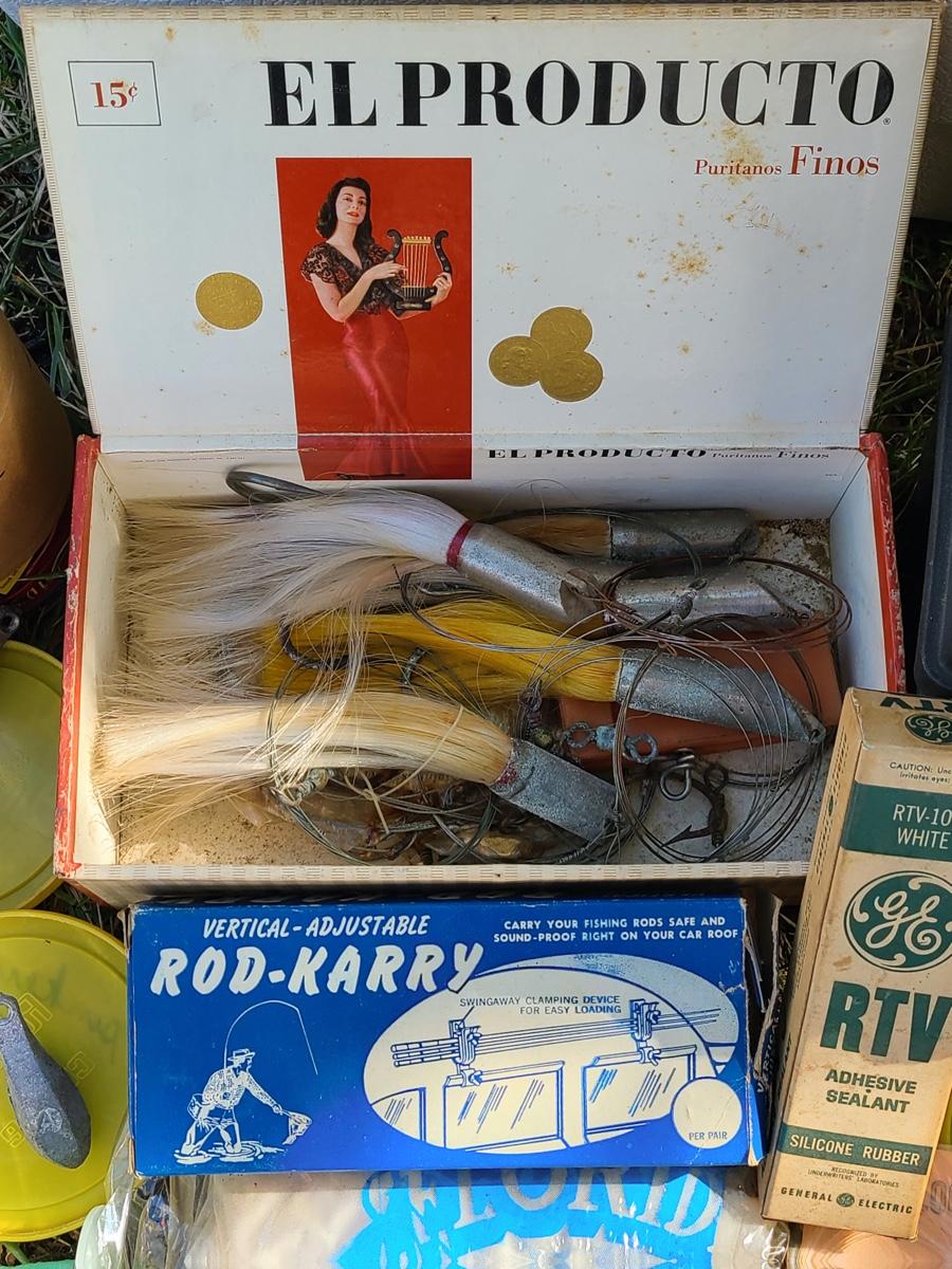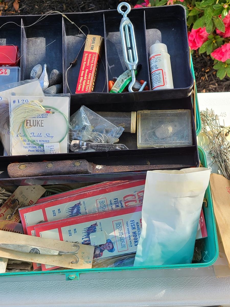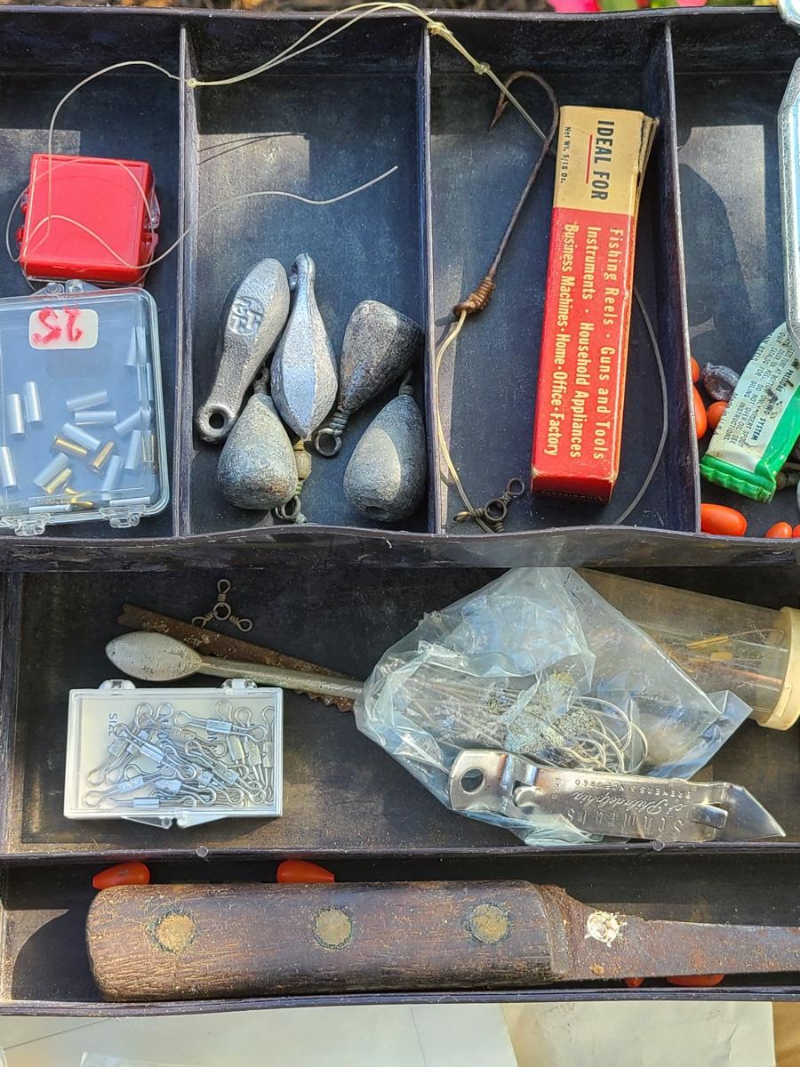 Lot 421: Vintage Fishing Supplies: Igloo Fishing Cooler, New Salt Water Reel and More
